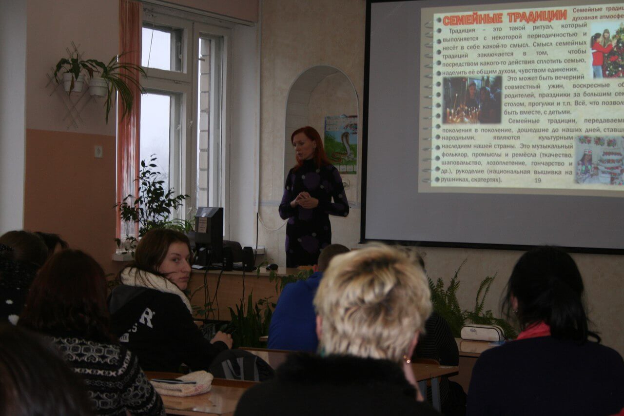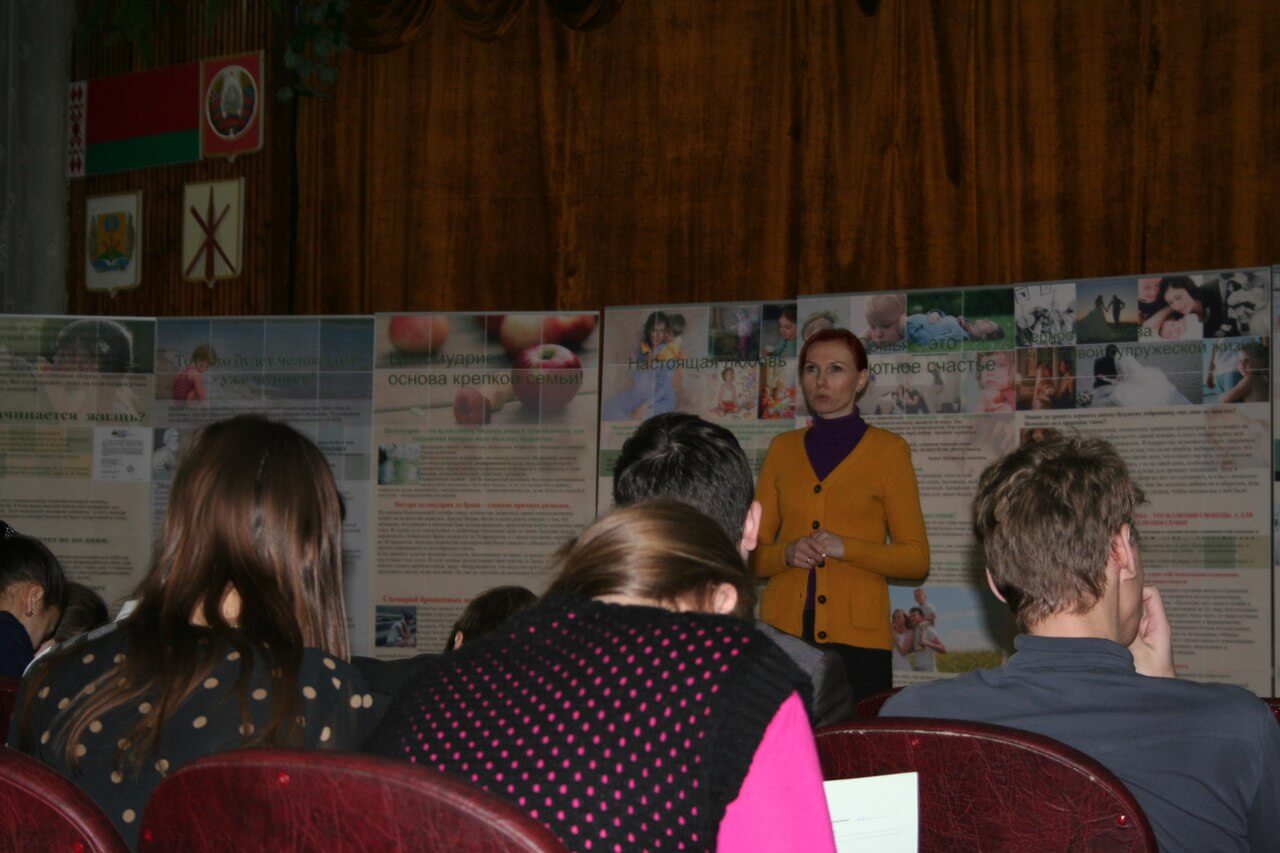 17.12. состоялась встреча волонтёров Центра «Покрова» со старшеклассниками 20 школы г.Бобруйска, а 18.12. — вторая в этом месяце встреча с учащимися торгово-экономического колледжа. Учащимся было предложено поучаствовать в социологическом опросе на тему «Понимание подростками традиционных семейных ценностей», результаты которого в скором времени будут обработаны и опубликованы. А также ребятам был представлен лекционно-выставочный комплекс «Человеческий потенциал Беларуси».