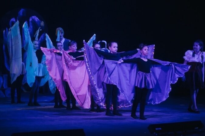 «В поисках Синей птицы» – это пьеса о добре и зле, о трудностях выбора и вере в лучшее, поставленная на основе одноименной сказки Мориса Метерлинка. Юные актеры перевоплотились в яркие образы духов огня, воды, тьмы, Божьего света и других персонажей.