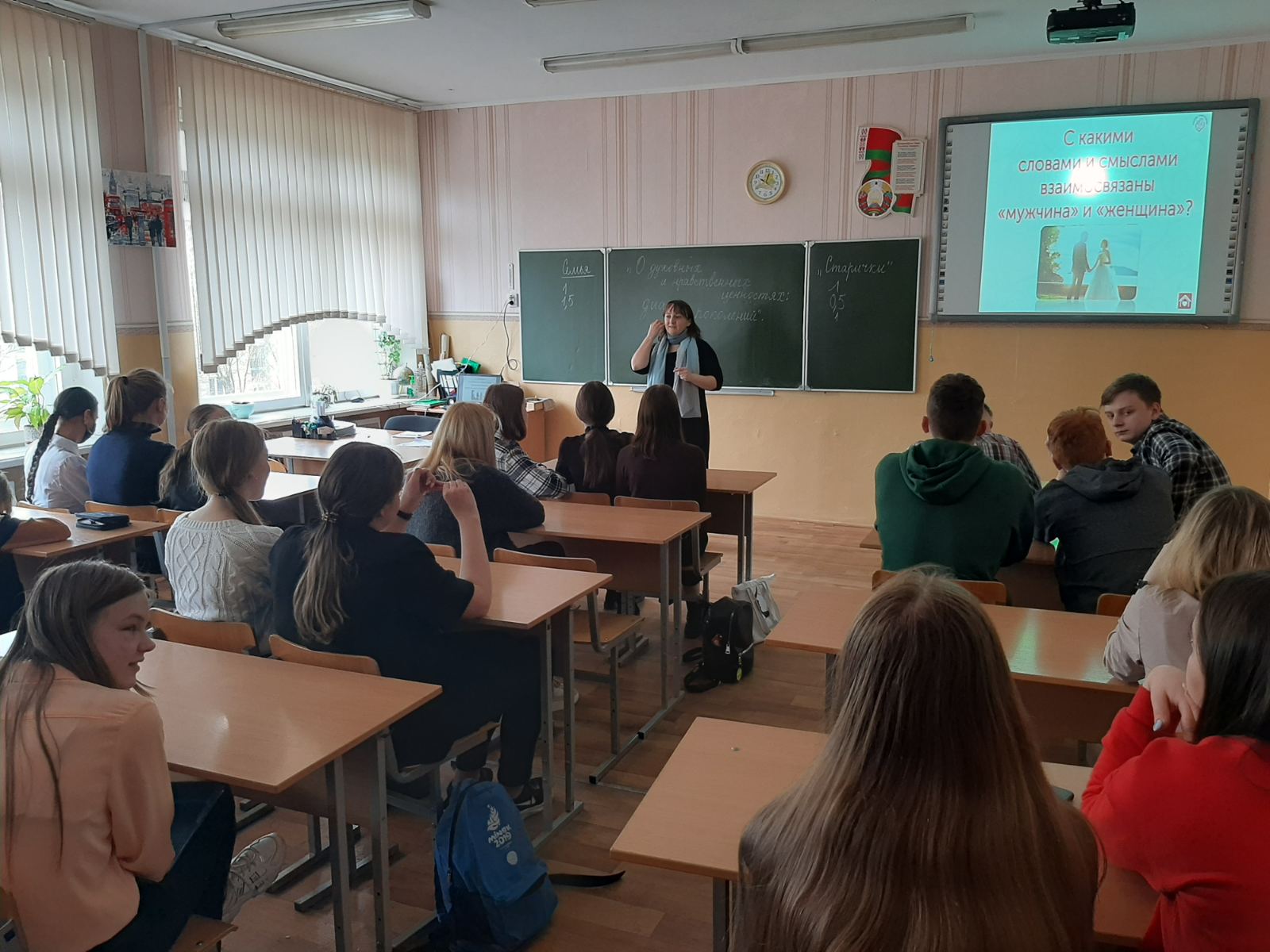 Продолжается просветительская деятельность в школах нашего города. В СШ №19 состоялась встреча методиста Центра поддержки семьи, материнства и детства «Покрова» Надежды Николаевны Поляковой с учащимися старших классов. Живой интерес вызвала тема занятия — «Духовно-нравственное воспитание — диалог поколений». Вместе с педагогом ребята анализировали и сравнивали отношение старшего поколения и современников к вере, любви и семейным ценностям.