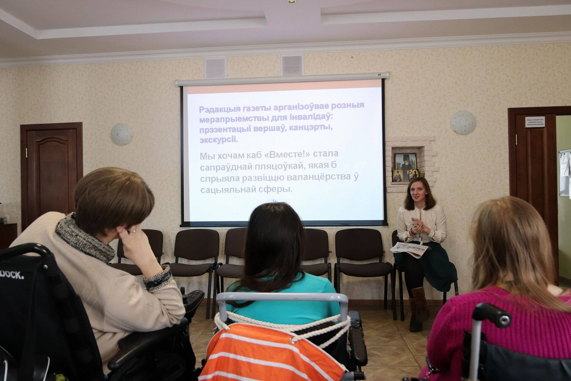 22.02.2019 г. в Центре «Покрова» состоялась встреча инвалидов с редактором отдела единственного в Беларуси издания, которое пишет для людей с ограниченными возможностями , Викторией Чаплевой.
