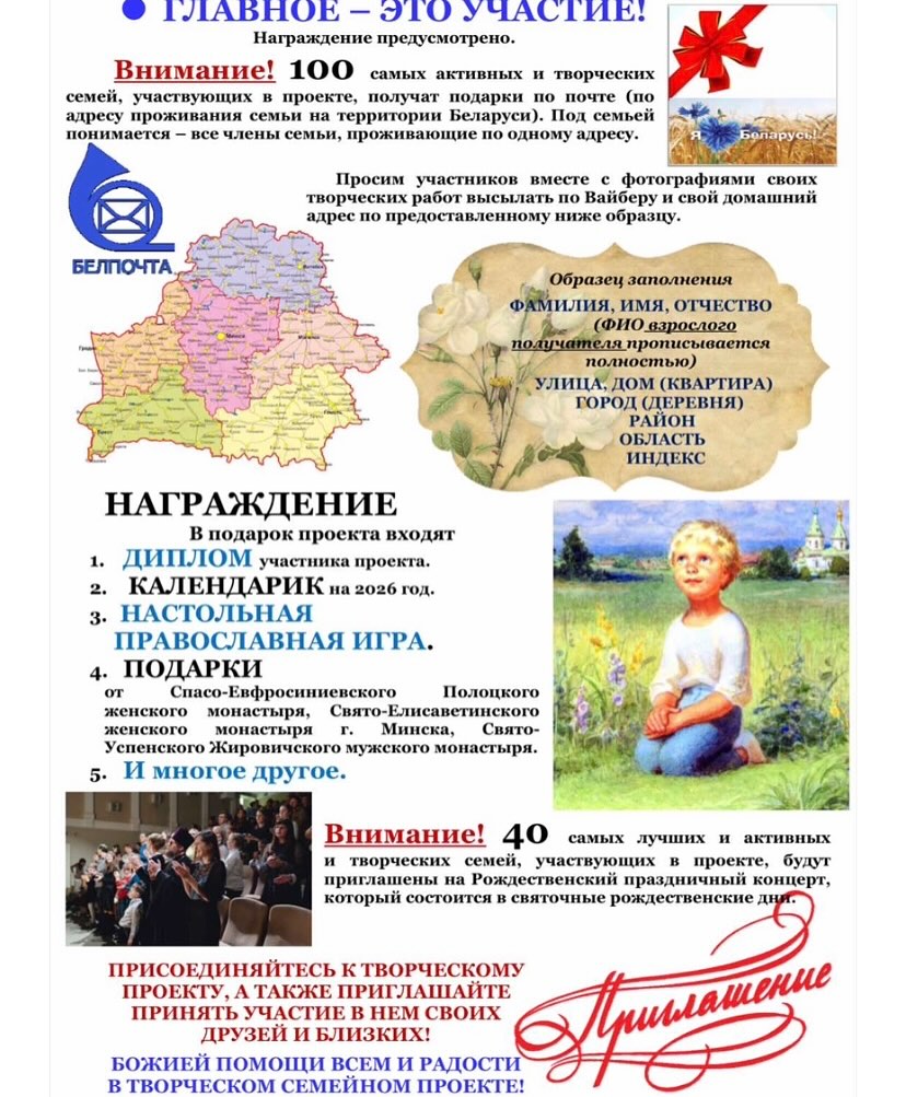 Объявляем о старте VI, заключительного, этапа семейного творческого проекта «Дорогами православной Беларуси вместе»