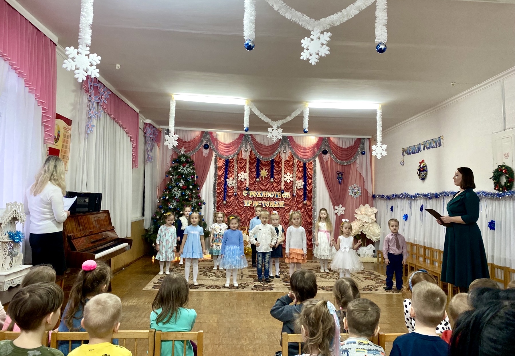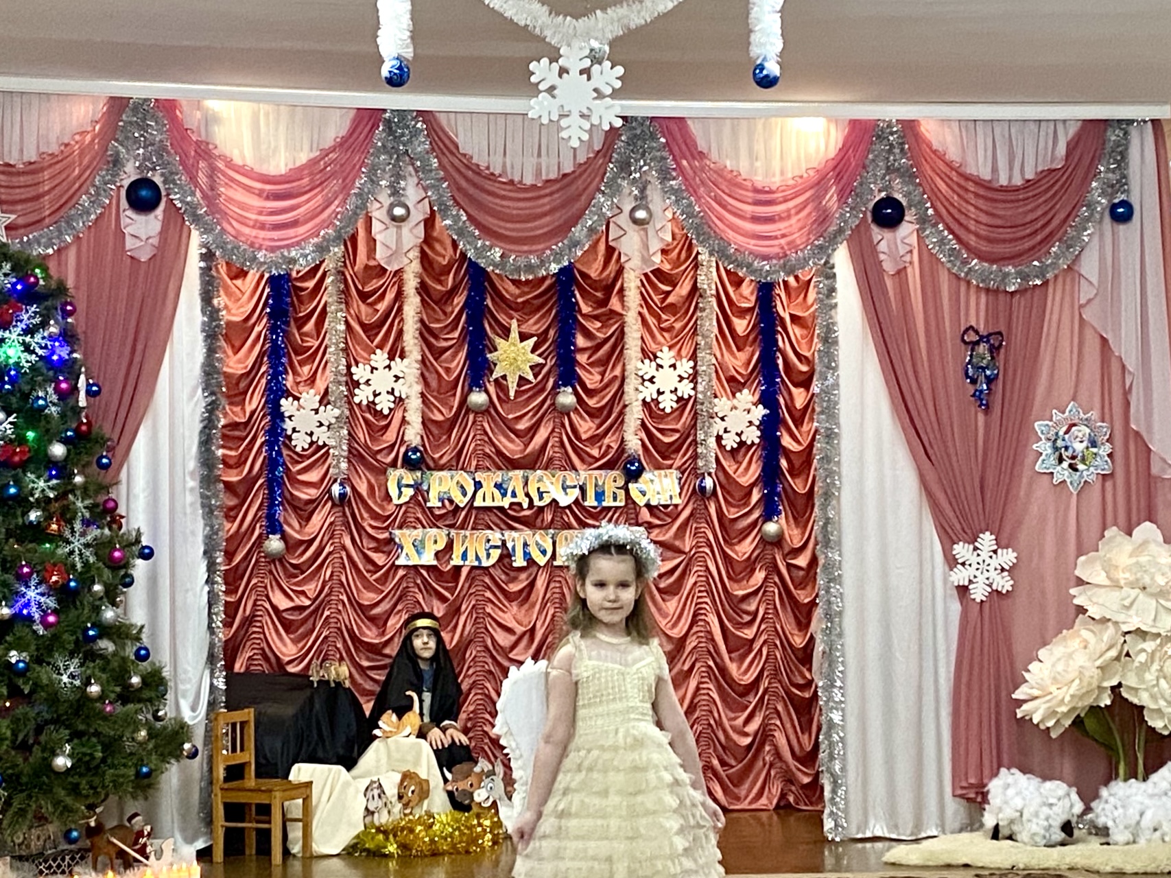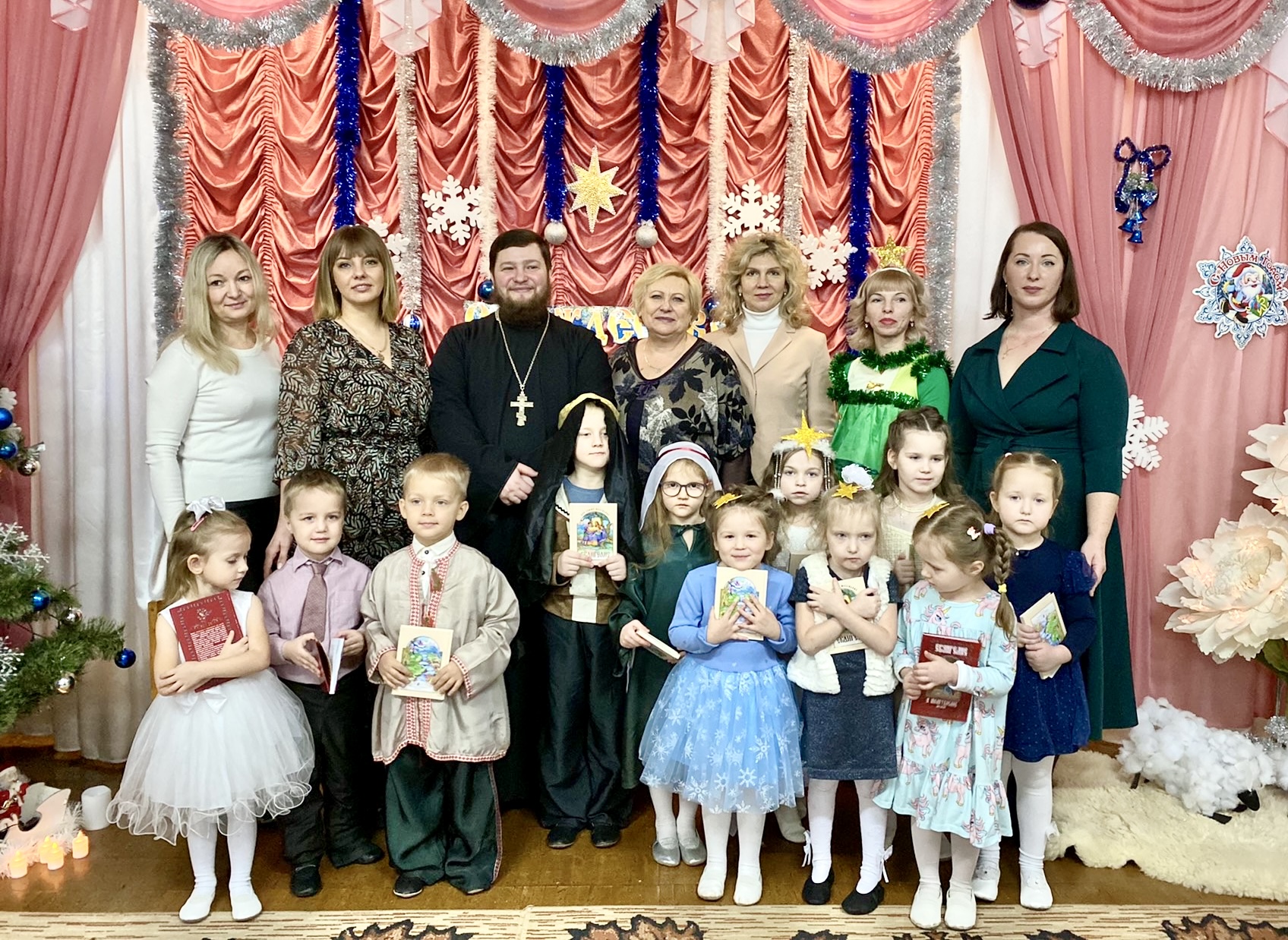Дети тепло и с открытыми объятиями встретили гостей. Вместе с воспитателями малыши подготовили рождественскую праздничную программу. Особенно отрадно, что в саду дети учатся видеть в Рождестве Христовом не только внешнюю, обрядовую сторону, но просвещаются светом православной веры. Так, постановка, рассказывающая о событии Рождества Господа Иисуса Христа, с участием волхвов, следовавших за Вифлеемской звездой, была просто великолепной. Дети читали стихи, пели песни, танцевали и просто радовались возможности вместе отпраздновать Рождество Христово.