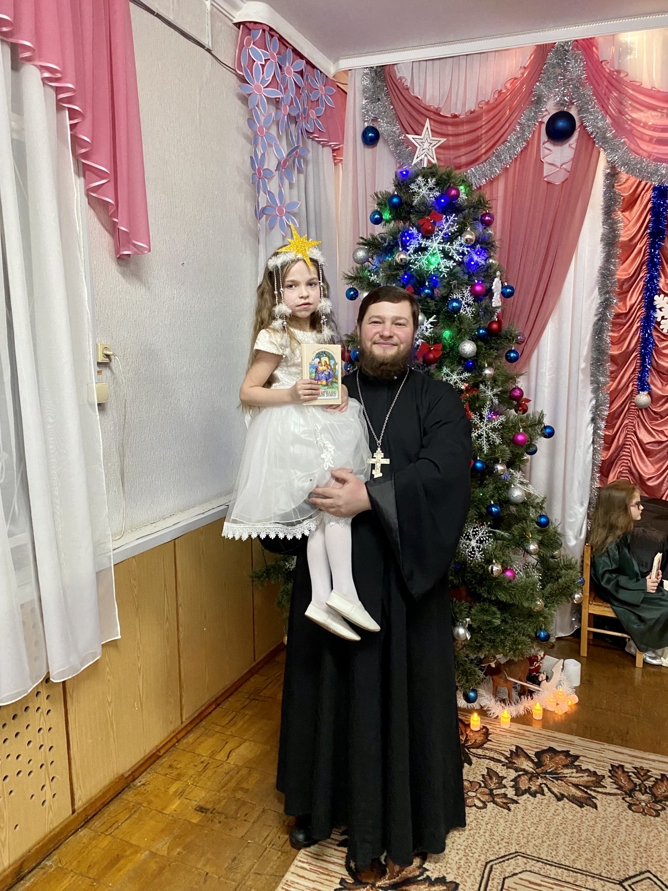 18 января, на Рождественский утренник поздравить детей с любимым зимним праздником пришли заместитель директора Центра «Покрова» Кристина Новоселова и настоятель Покровского храма при Центре «Покрова», руководитель Отдела по вопросам семьи, защиты материнства и детства Бобруйской епархии иерей Алексей Поляков.