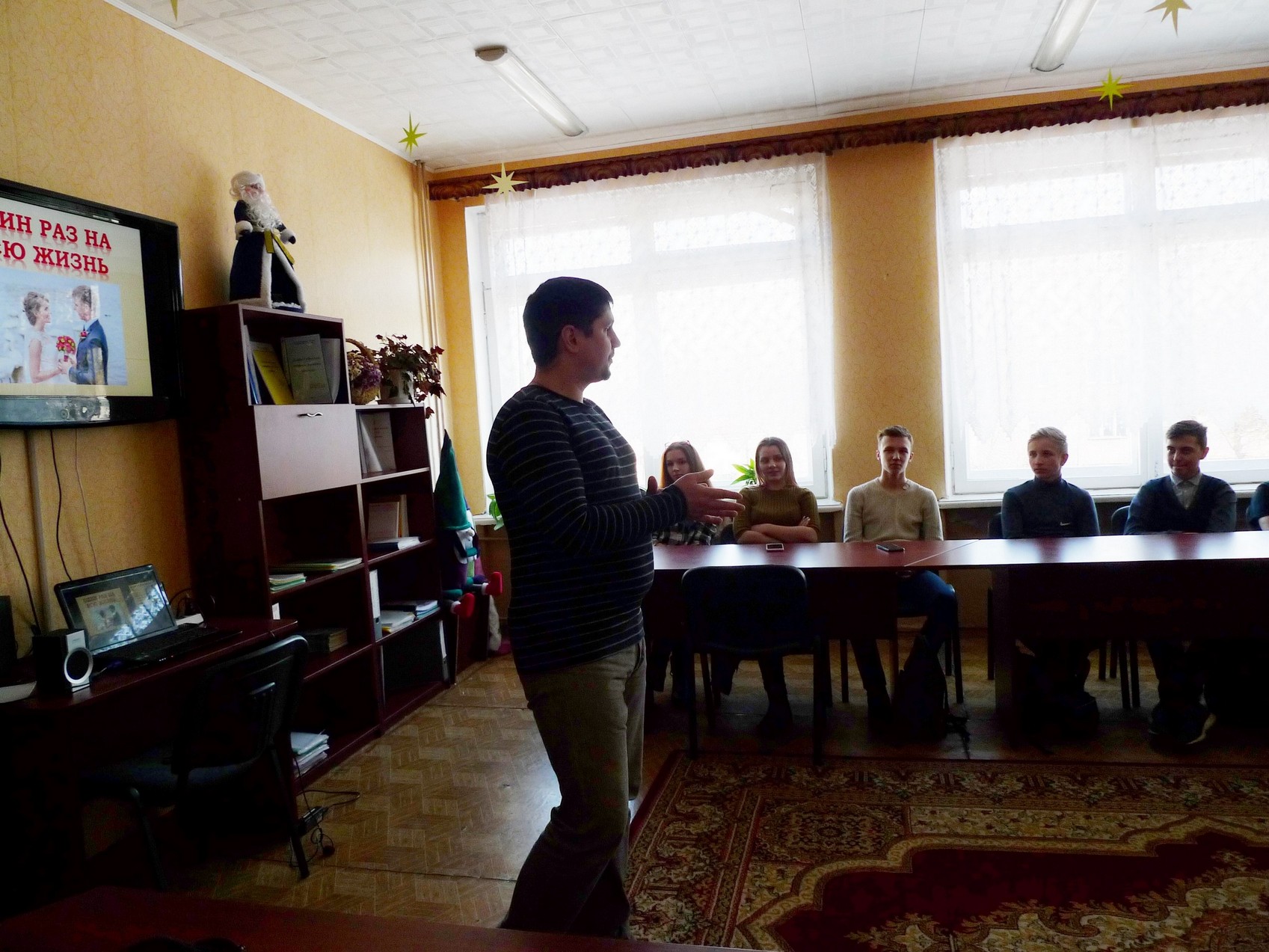 1, 7, 8, 12 февраля 2019 года педагогом Центра «Покрова» Дмитрием Игоревичем Терентьевым проведены беседы-презентации о семейных ценностях с учащимися 9-10 классов ГУО «Средняя школа № 19 г. Бобруйска» и 7-8 классов ГУО «Средняя школа № 17 г. Бобруйска». В рамках бесед с ребятами обсуждалась проблема разводов (за год в Беларуси распадается более 30 тысяч семей), их основные причины, а также возможности и условия достижения в браке семейного счастья и подлинной любви между супругами.