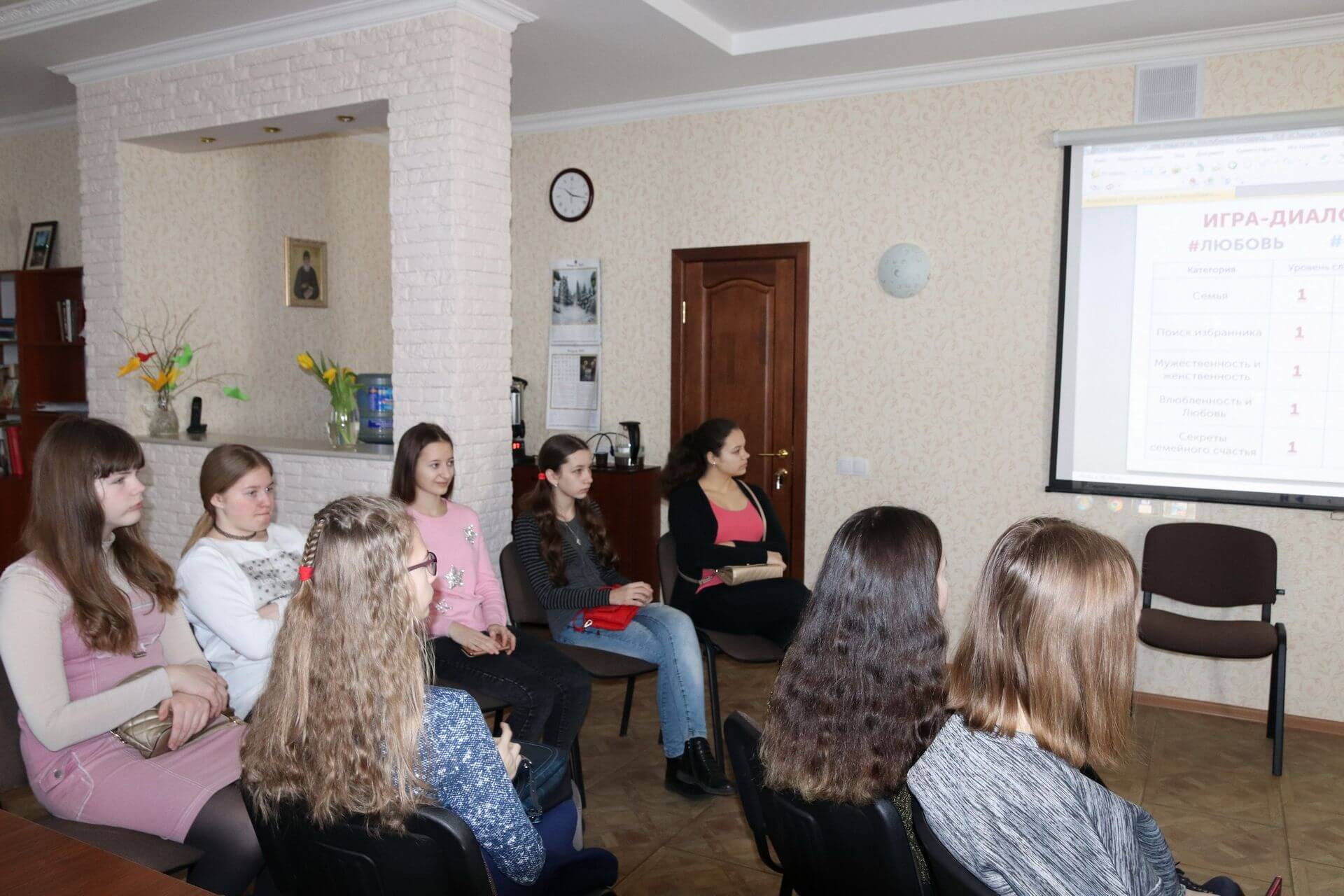 9 марта 2019 года в Центре поддержки семьи, материнства и детства «Покрова» прошла игра «Любовь. Семья. Счастье». Старшеклассники ГУО «Средняя школа №18 г.Бобруйска» поразмышляли над важными вопросами: что такое любовь и что такое влюбленность? почему хорошо, когда в семье рождается много детей? как помочь друг другу улучшить свои сильные качества характера? кто является главой семьи?