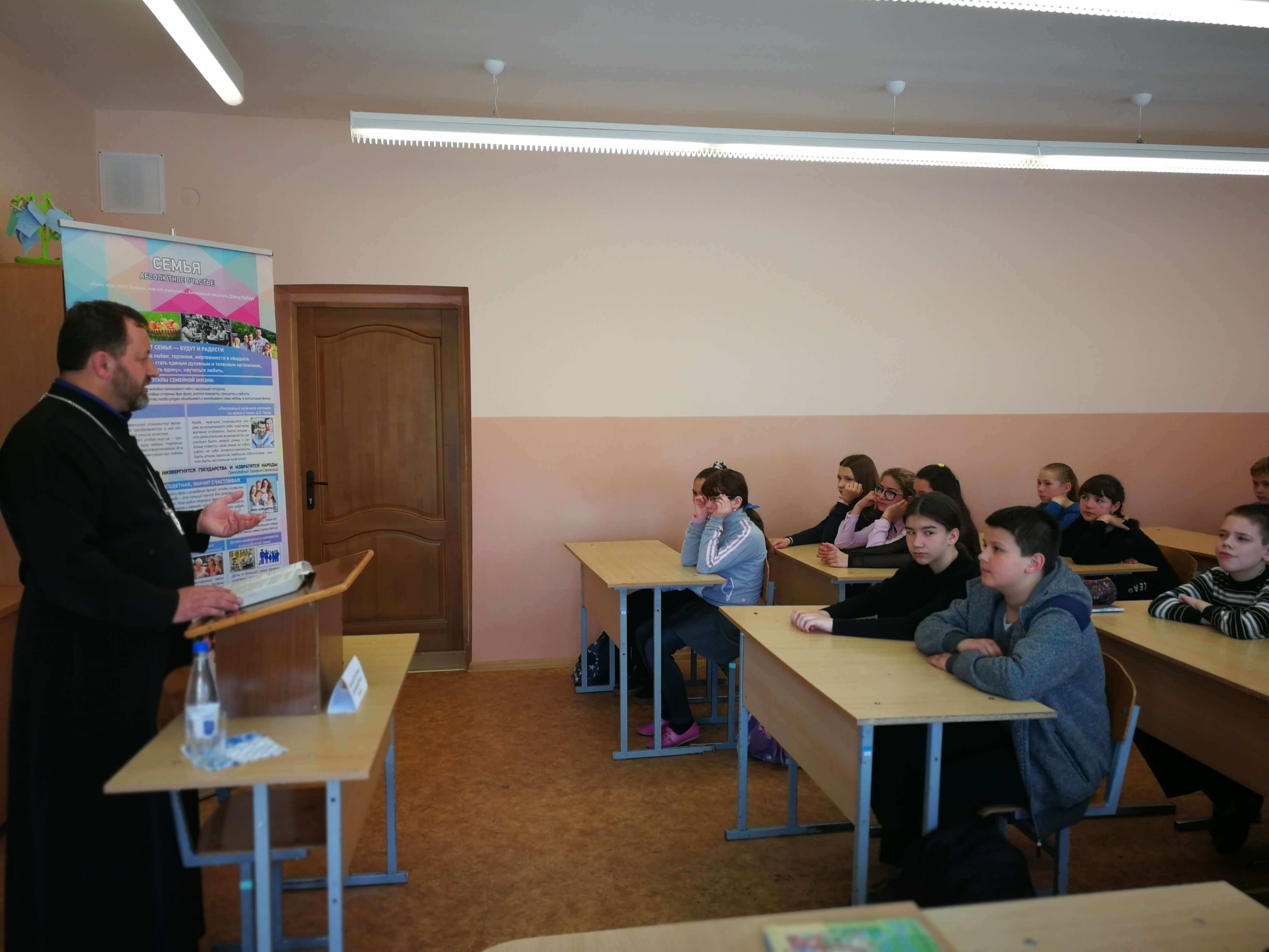 В рамках реализации проекта «Сердце семьи» учащиеся VI – IX классов ГУО «Средняя школа №30 г. Бобруйска» встретились с настоятелем Свято – Сретенского храма – протоиереем Иоанном Колядой.