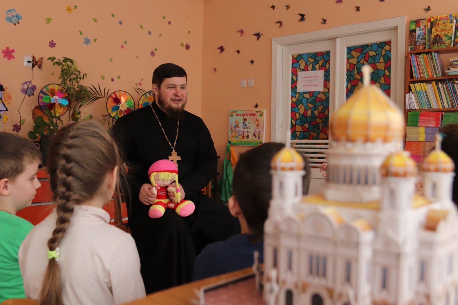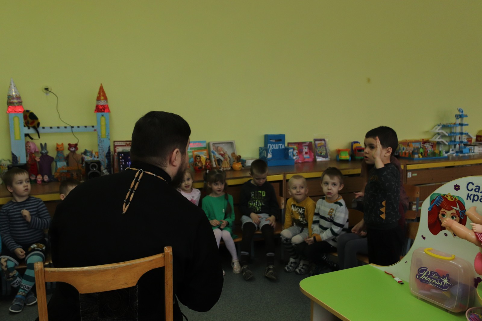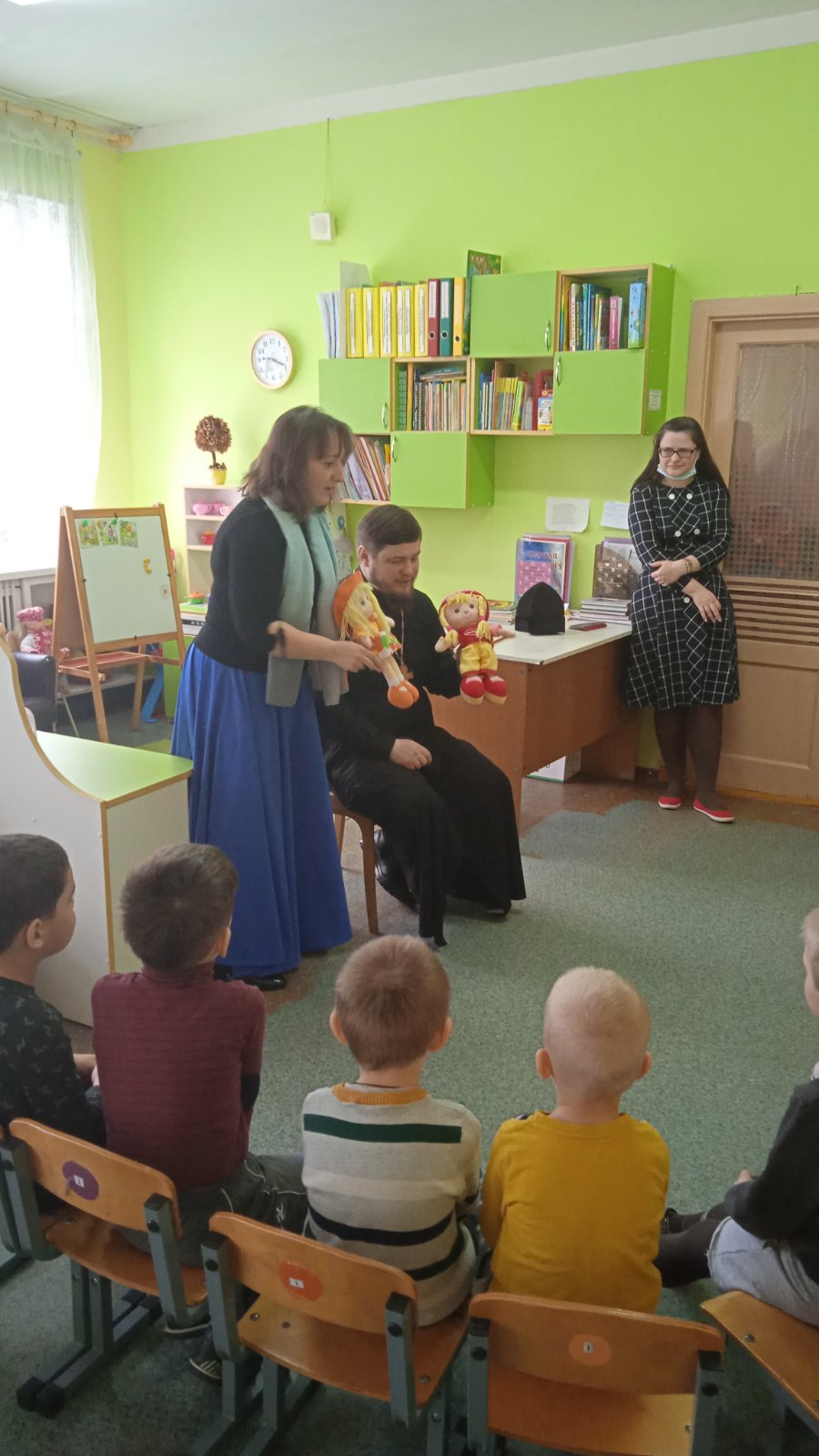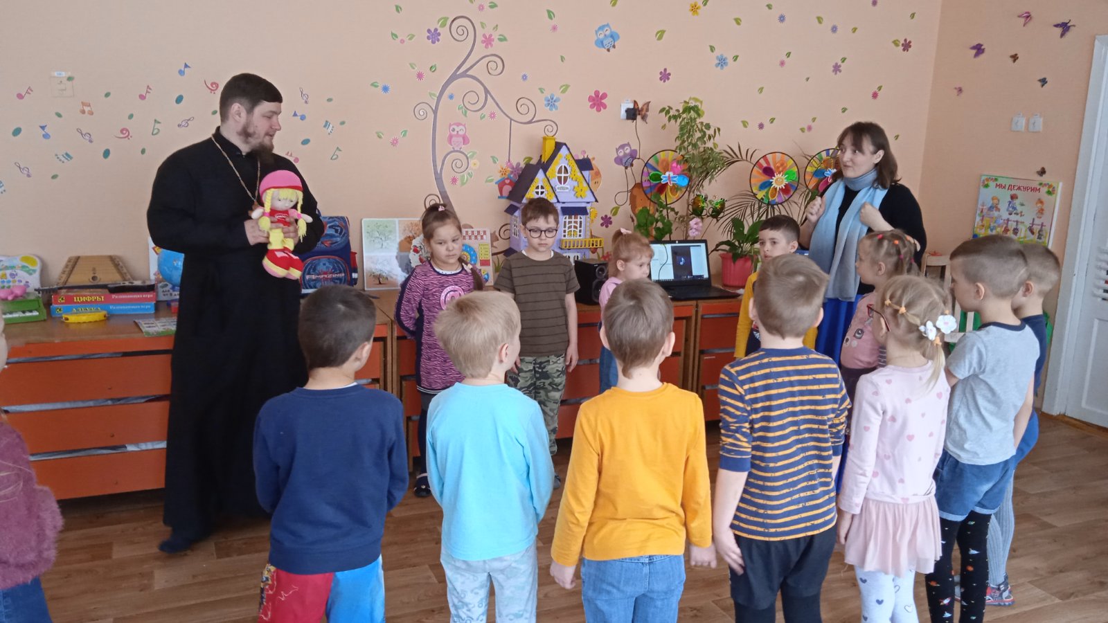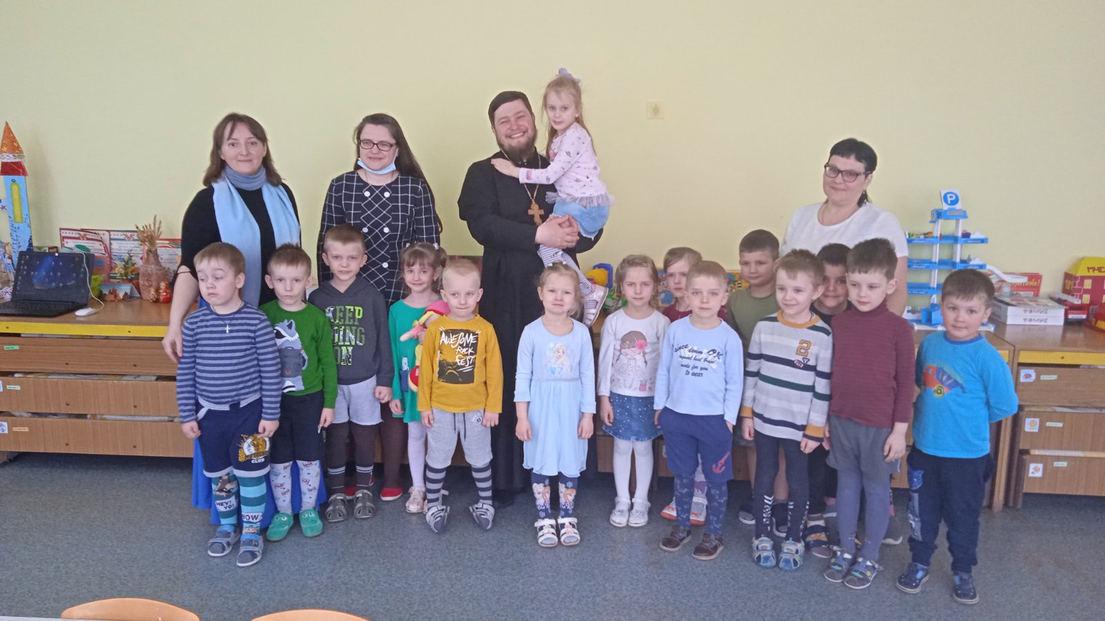 6 апреля состоялась встреча настоятеля храма Покрова Пресвятой Богородицы иерея Алексия с воспитанниками ГУО » Ясли-сад № 44 г.Бобруйска». Вместе с матушкой Надеждой отец Алексий провел с малышами беседу о церковной свече, рассказал, что она символизирует. Также гости учреждения поиграли с ребятами в музыкальную игру с участием сказочных персонажей.