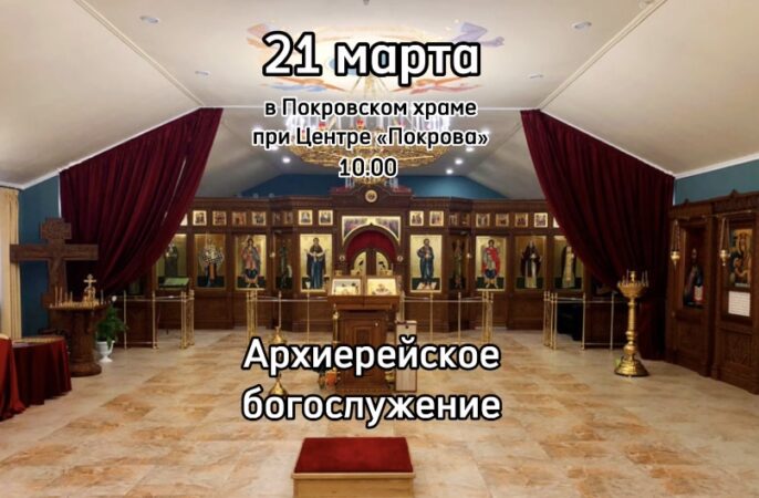 21 марта в 10.00, в день памяти сорока мучеников Севастийских, Божественную Литургию Преждеосвященных Даров в Покровском храме при Центре «Покрова» в Бобруйске совершит епископ Бобруйский Серафим.
