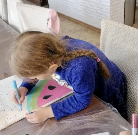 Ребята научились работать с акриловыми красками, узнали тонкости и секреты процесса росписи ткани. Дети с интересом выбирали рисунки, подбирали цвета красок, которыми будут расписывать сумки. И у них получились настоящие шедевры, которых больше ни у кого нет.