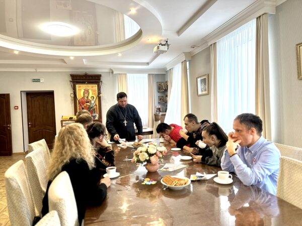 Встреча состоит из двух частей: занятия физкультурой в спортзале и беседы с иереем Алексеем Поляковым за чашкой чая.