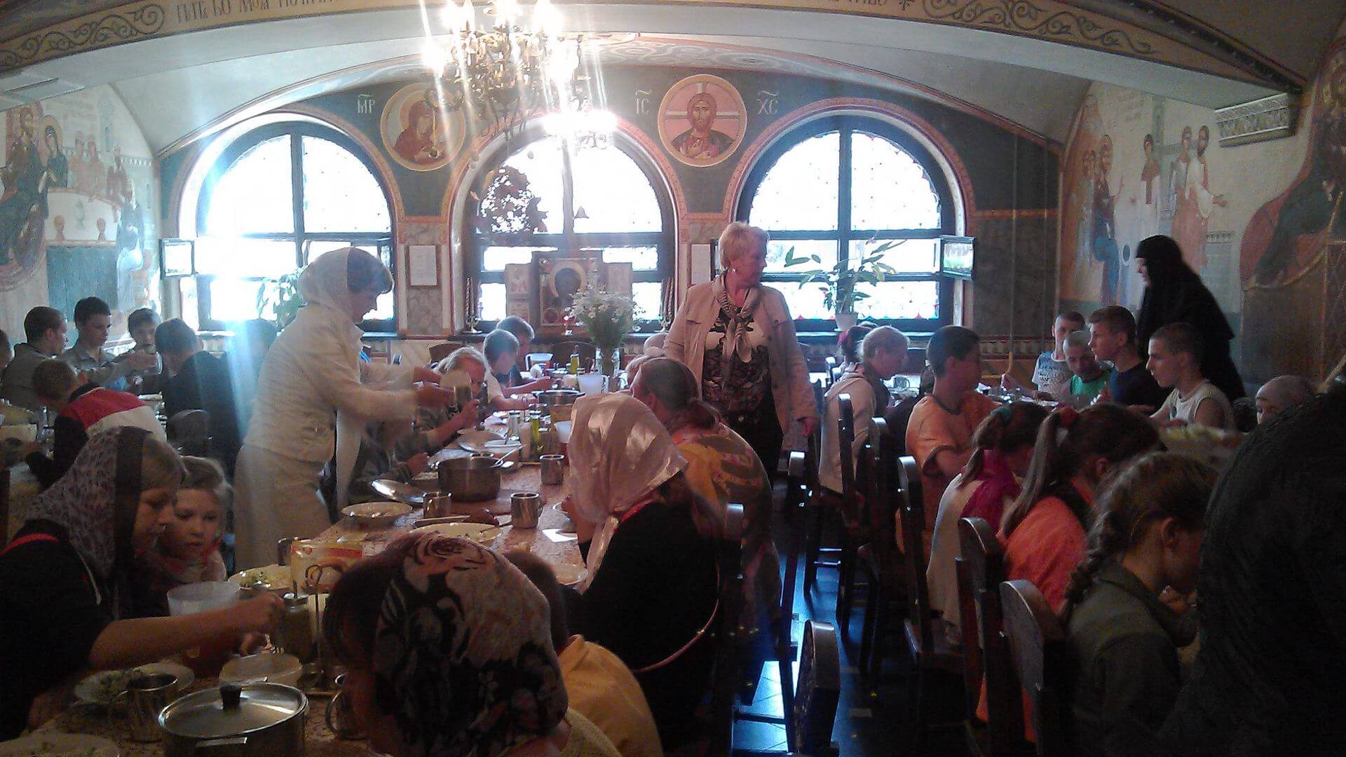В Свято-Елизаветинском монастыре паломники поучаствовали в Божественной Литургии, причастились, пообедали в монастырской трапезной, затем послушница Вероника провела экскурсию по монастырю.