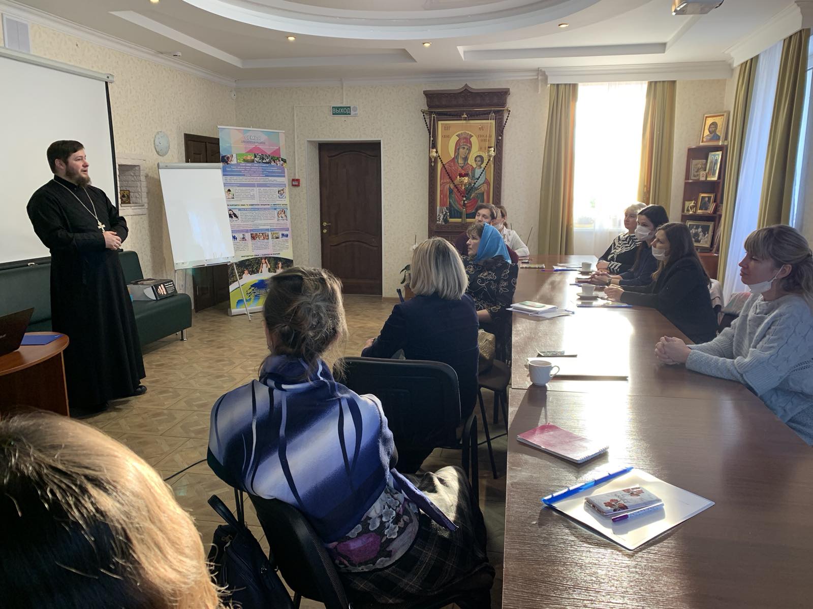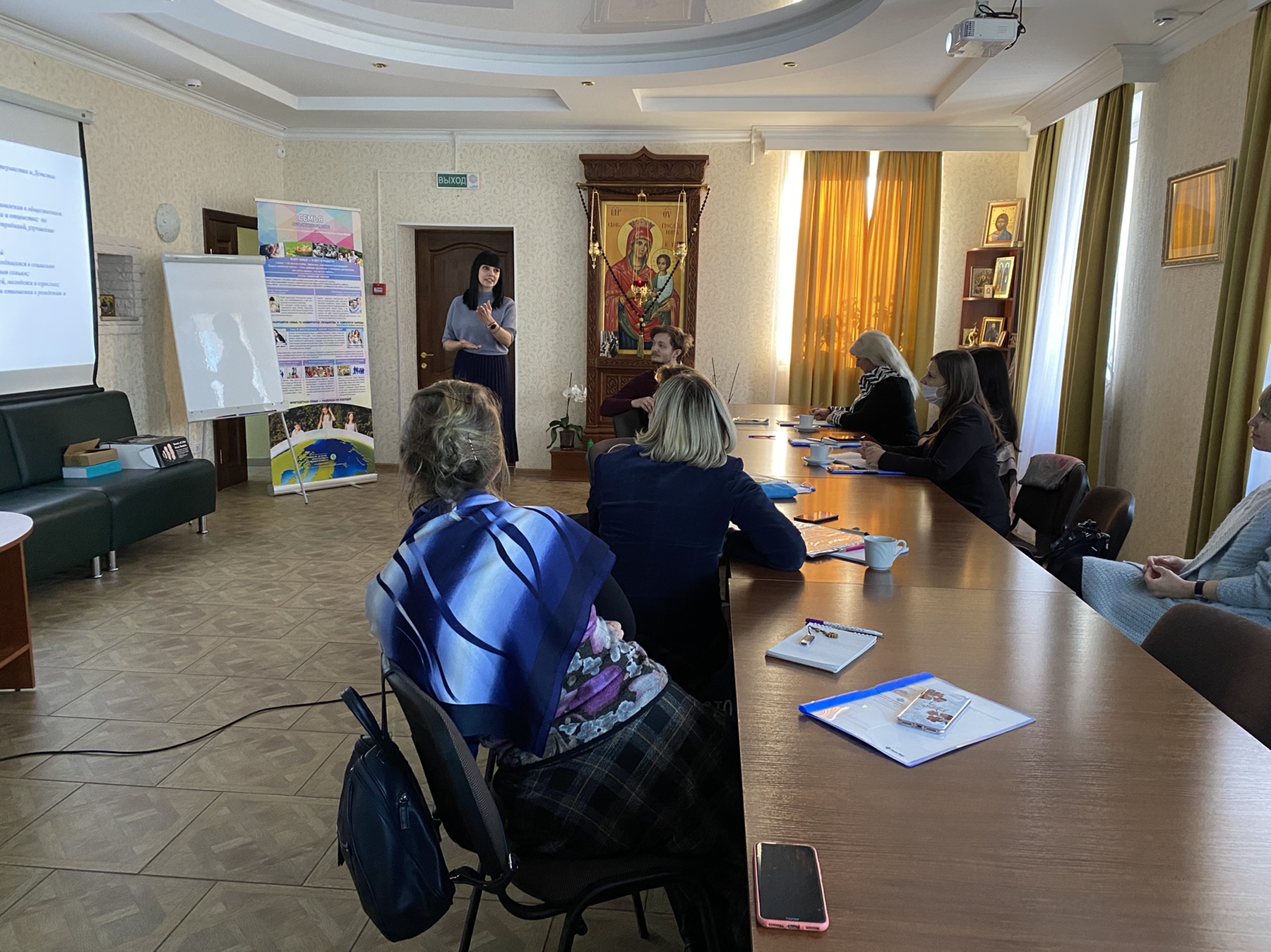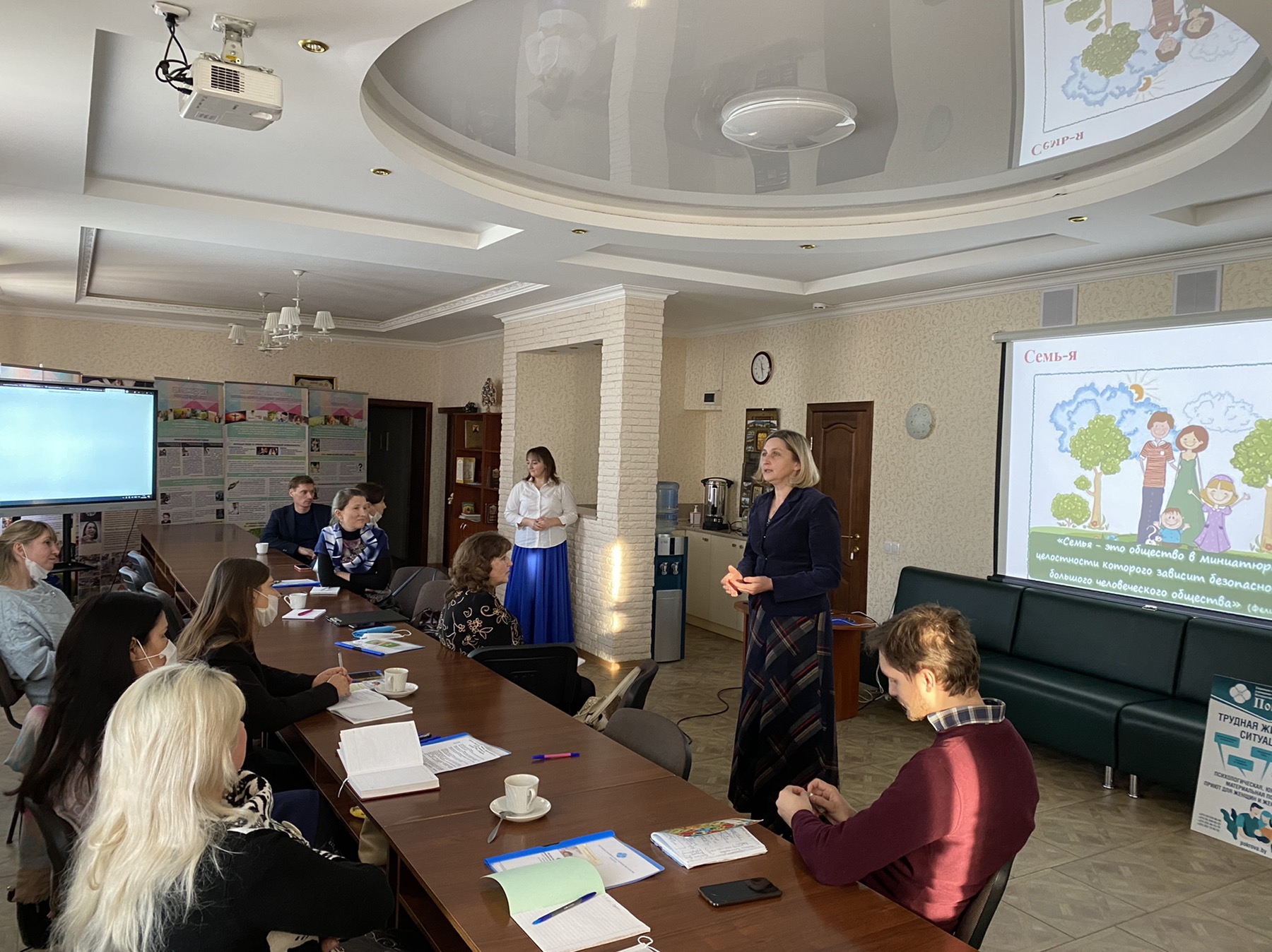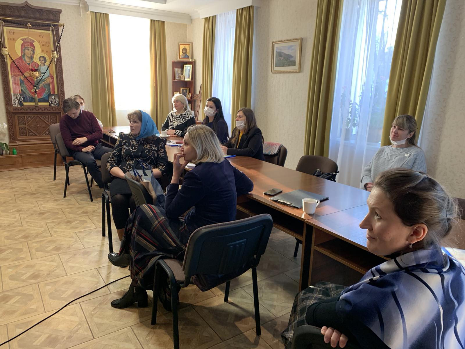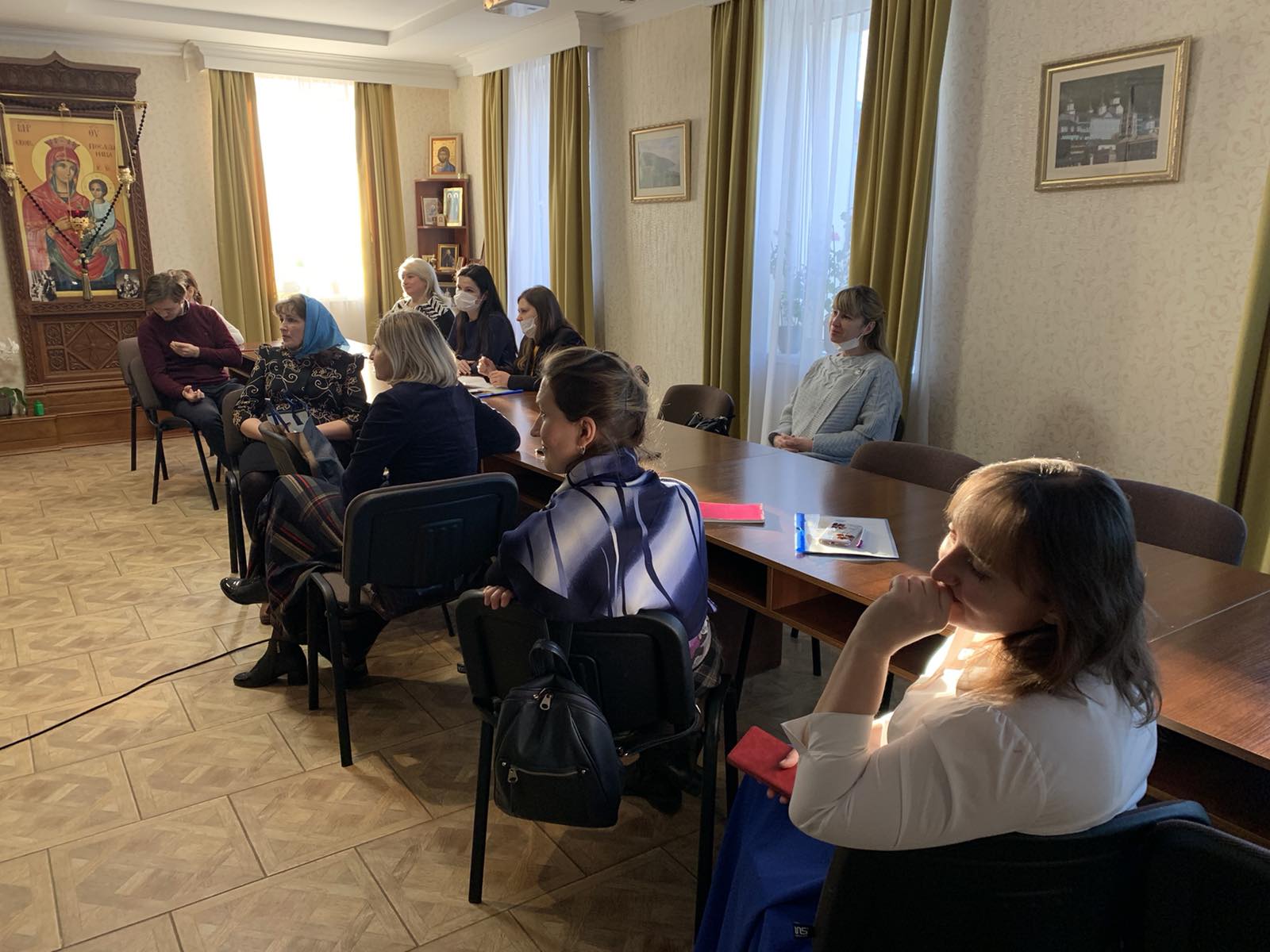 8 декабря 2020 года СПУ «Центр поддержки семьи, материнства и детства «Покрова» встретил гостей из городов Гомель и Полоцк. Активные, неравнодушные, инициативные педагоги встретились, чтобы поделиться опытом просветительской деятельности. Гостеприимно встретили гостей настоятель храма Покров Пресвятой Богородицы Бобруйской епархии иерей Алексий ПОЛЯКОВ, руководитель Центра ЗУБЕНКО Андрей Владимирович, которые провели обзорную экскурсию и пригласили в конференц-зал, где и прошла плодотворная встреча.