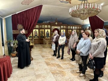 Встретили гостей заместитель директора Центра «Покрова» Кристина Игоревна Новоселова и настоятель Покровского храма иерей Алексей Поляков.