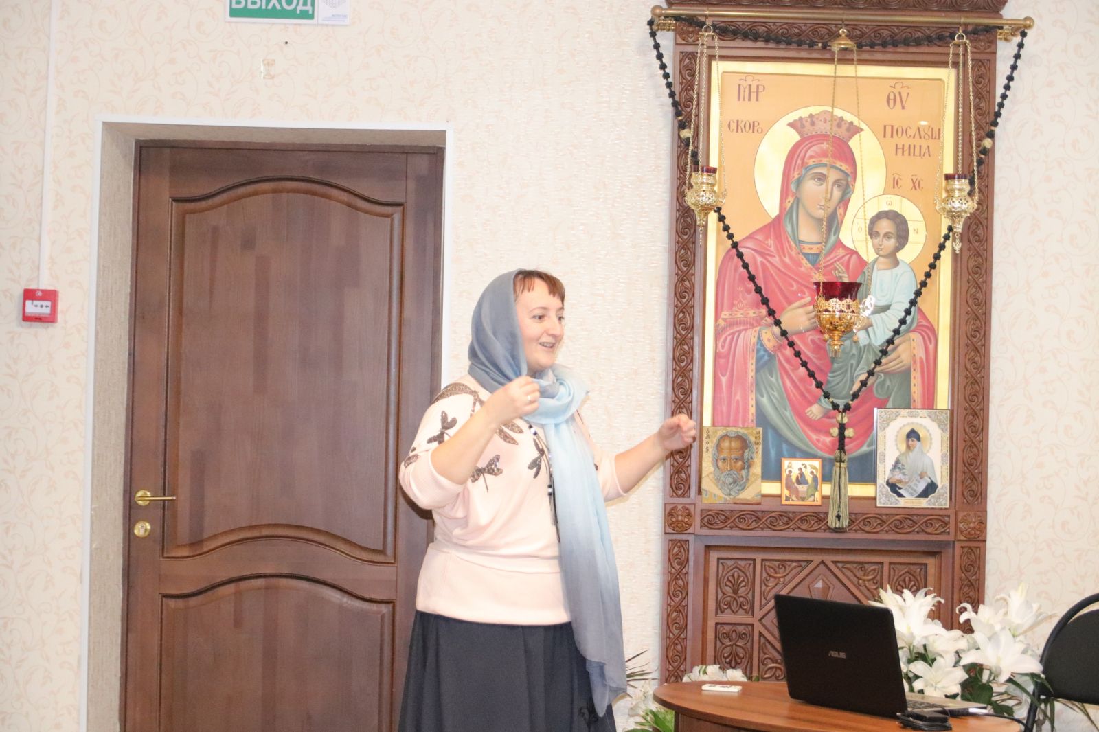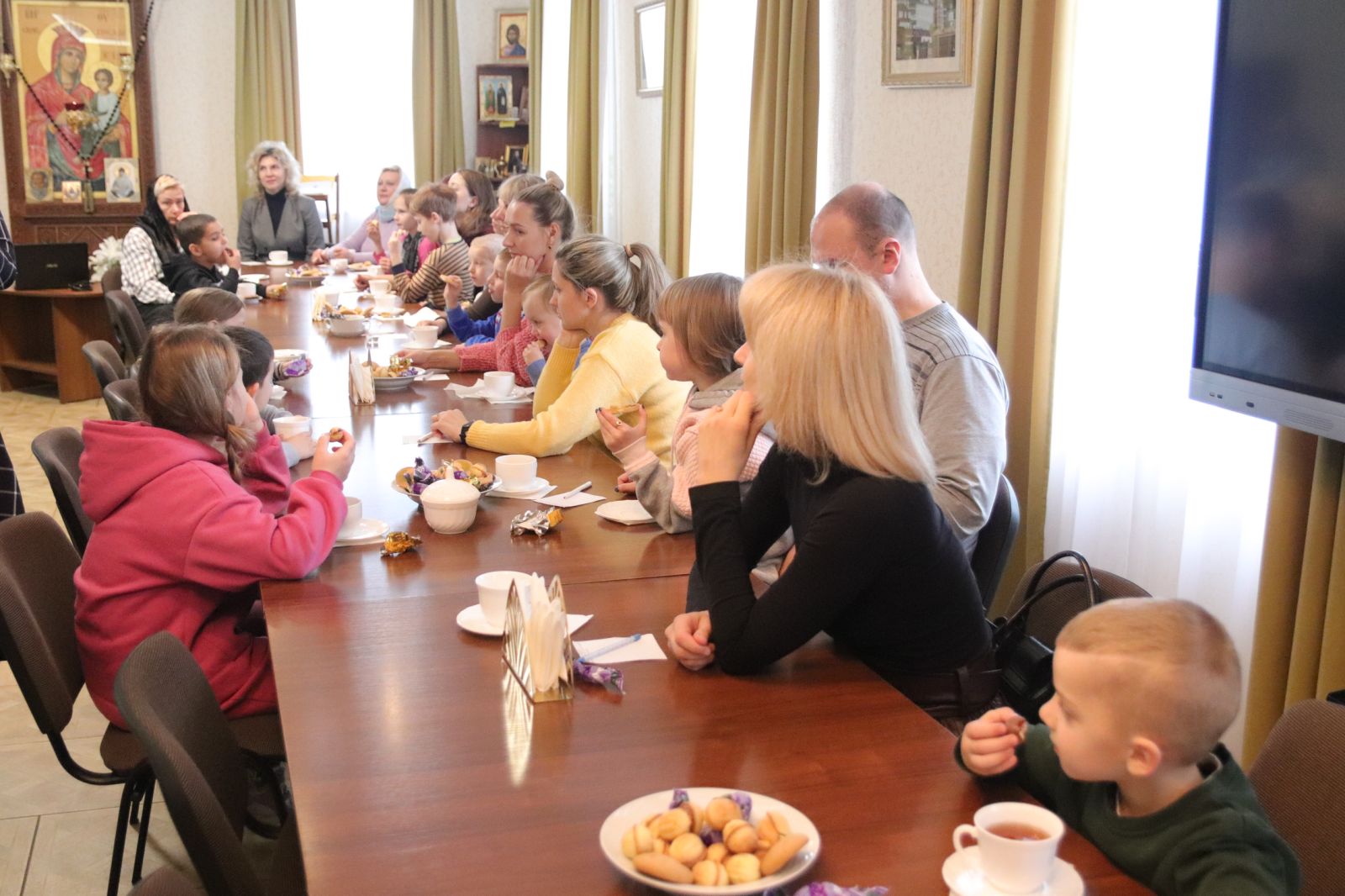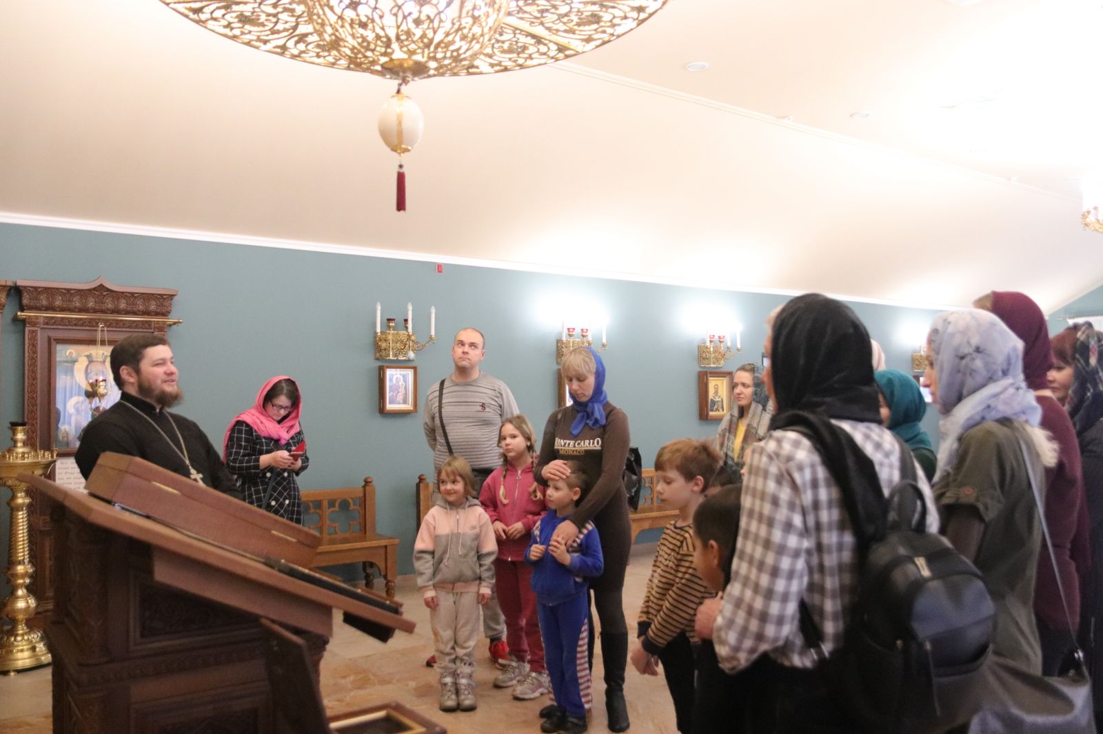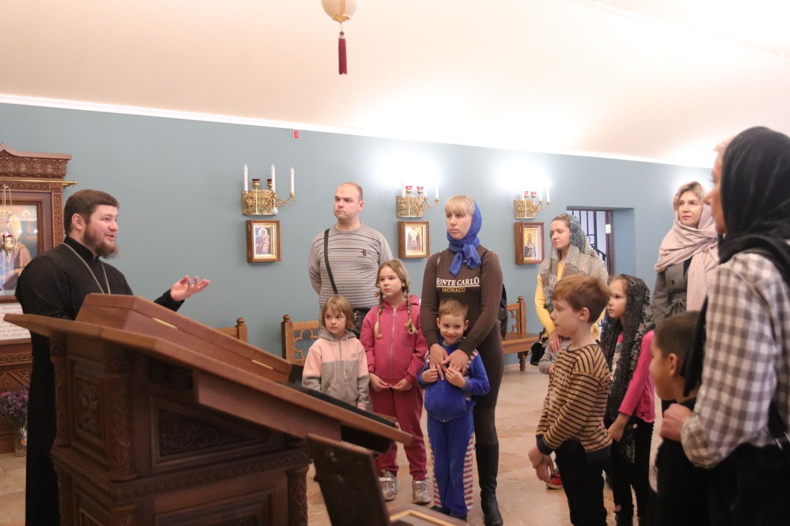 Центр поддержки семьи, материнства и детства «Покрова» посетили педагоги, родители и воспитанники ГУО «Ясли-сад № 44». Встречали гостей настоятель храма Покрова Пресвятой Богородицы иерей Алексий Поляков и его супруга Надежда Николаевна. Во время встречи большие и маленькие гости приобщились к православной культуре: отец Алексей провел экскурсию по храму, рассказал об иконах. Матушка Надежда провела игру «Угадай мелодию», которая понравилась и взрослым, и детям.