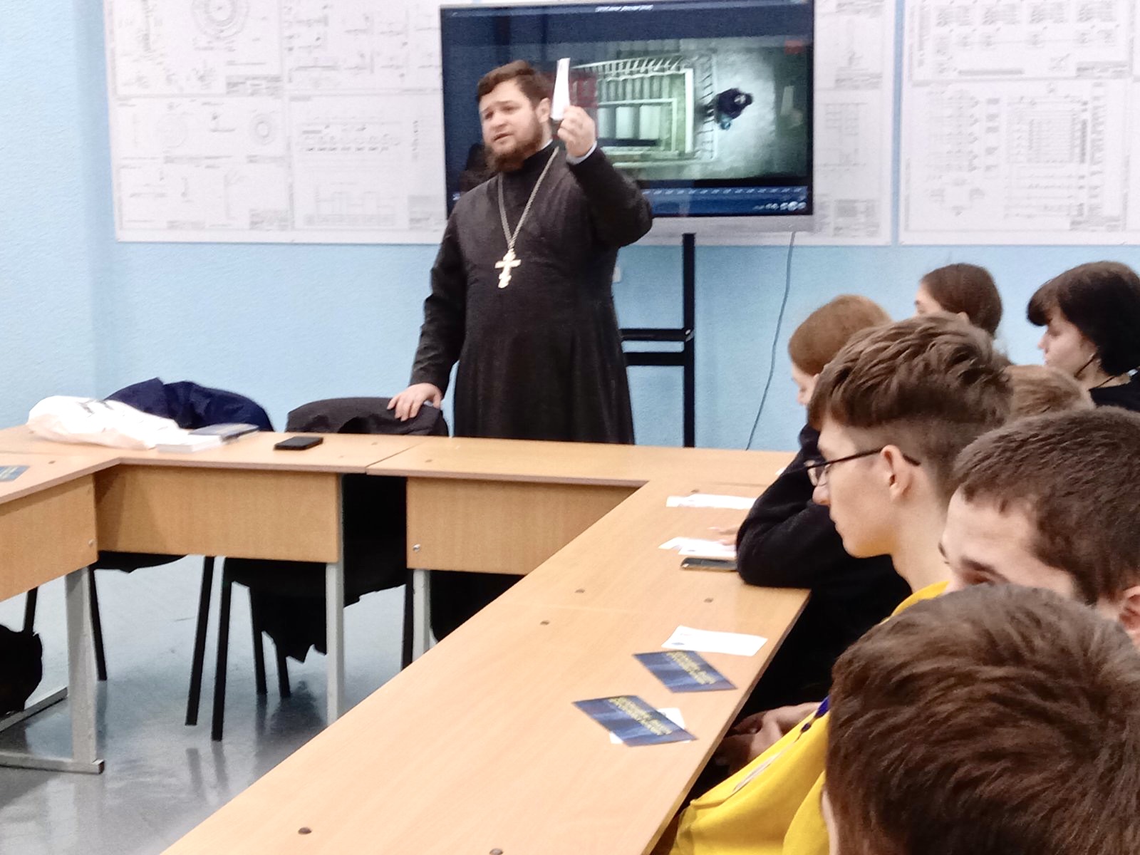 Учащимся был показан жизнеутверждающий фильм «Мама, я вырасту». После просмотра, на примере судеб героев киноленты, иерей Алексей обсудил с ребятами понятие «право», как право выбора, нравственного поступка. Каждый из героев фильма, казалось бы, поступал по праву, но, часто забывая о нравственной стороне своего выбора. «Право» дано каждому, и врачу, по праву отправлявшему женщину на аборт, и беременной женщине, которая по праву может сохранить или убить своего нерожденного ребенка, но не каждому человеку присуща нравственность.