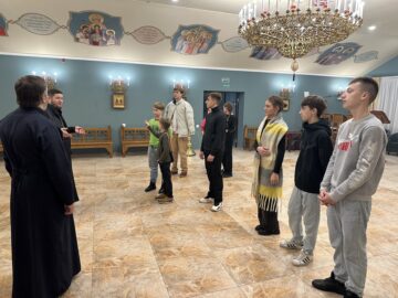 Вместе с иереем Алексеем Поляковым молодежь прошла в Покровский храм. Батюшка рассказала о том, как он устроен, какие в нем есть святыни и иконы.
