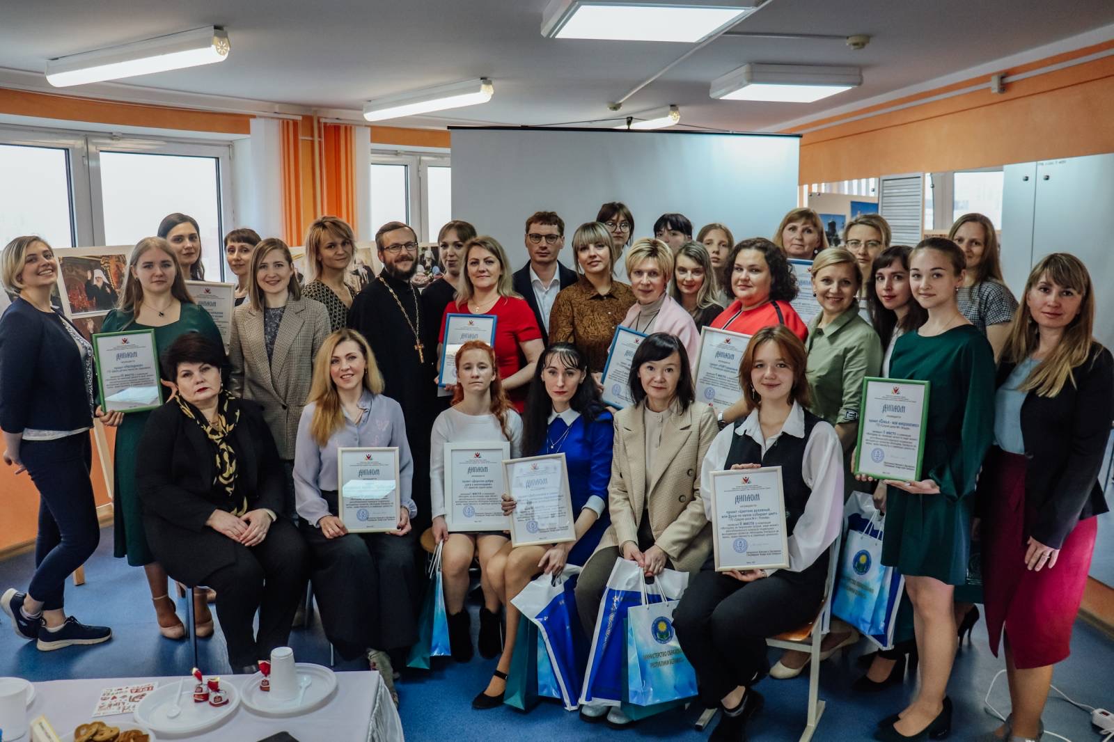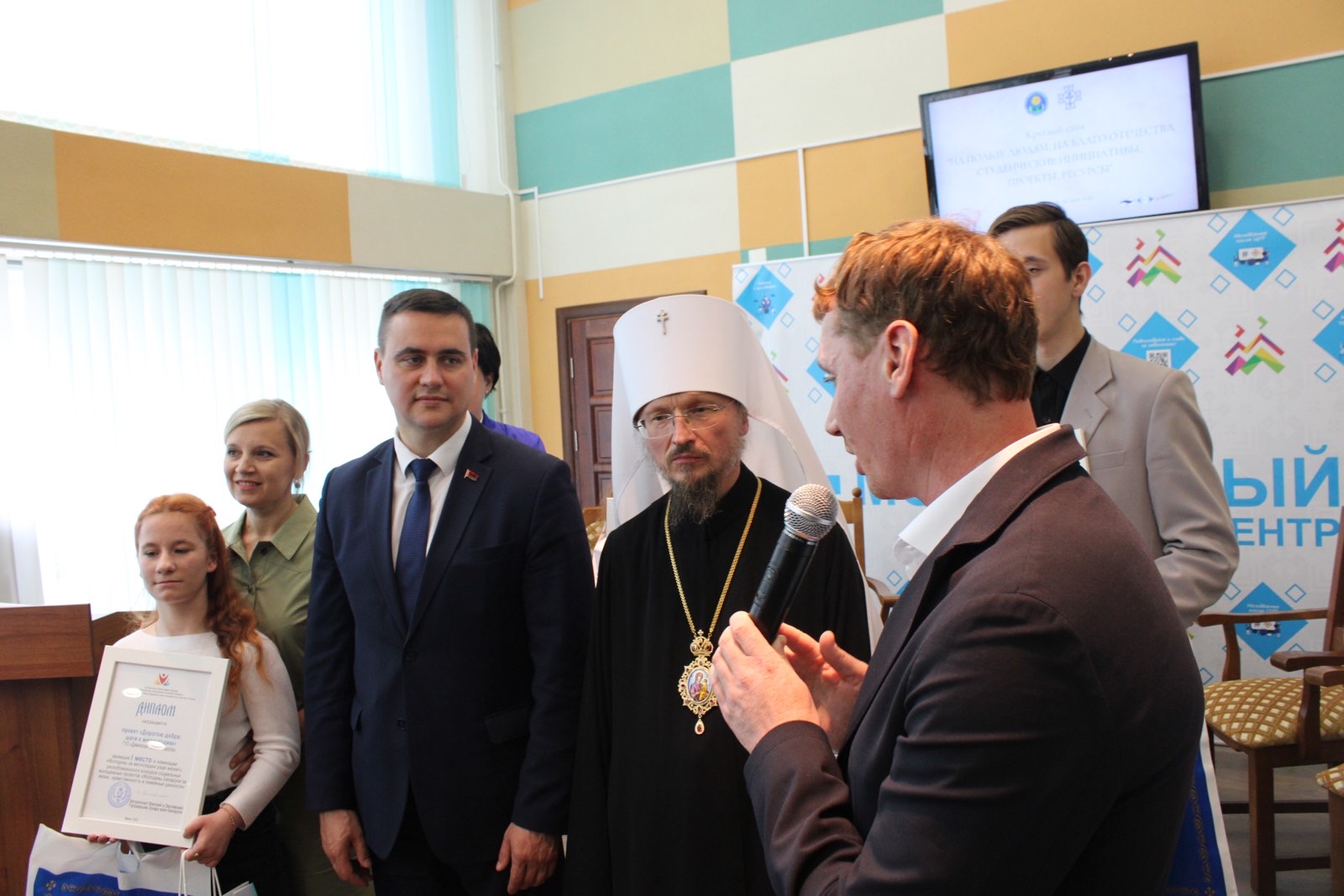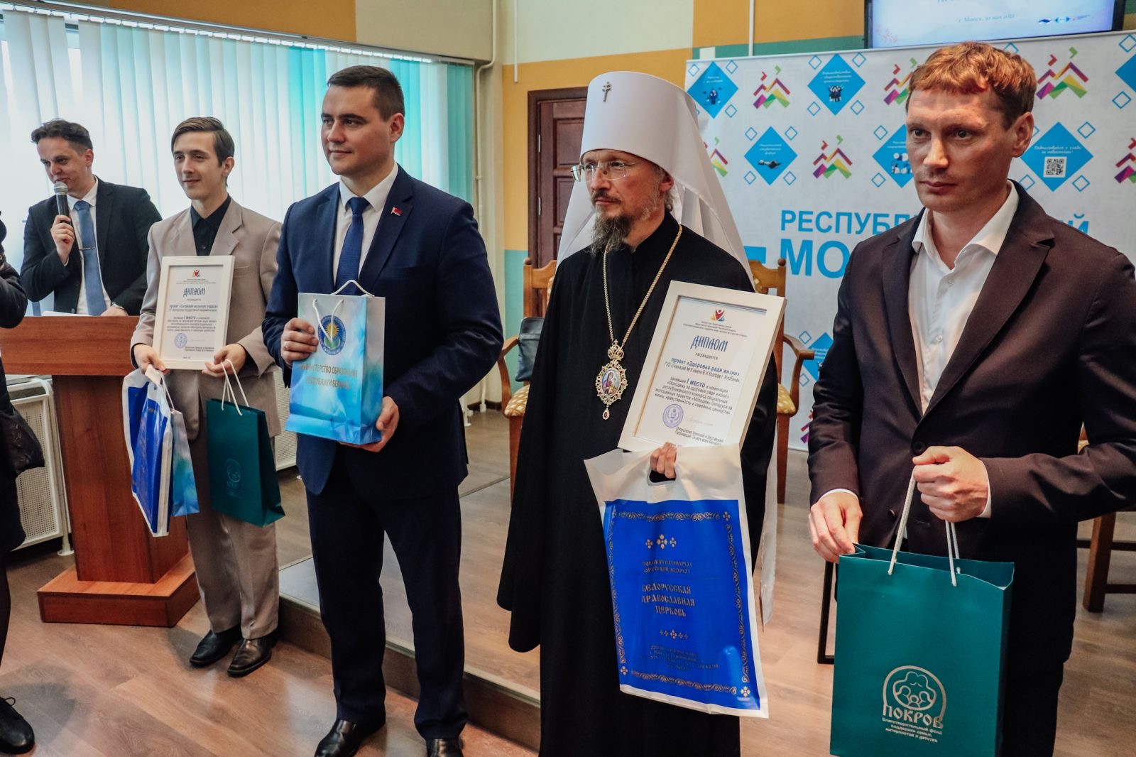 Лауреатов, занявших вторые и третье места, поздравили начальник Республиканского волонтерского центра Виктория Олеговна Захаревская и Председатель Синодального информационного отдела Белорусской Православной Церкви иерей Игорь Васько.