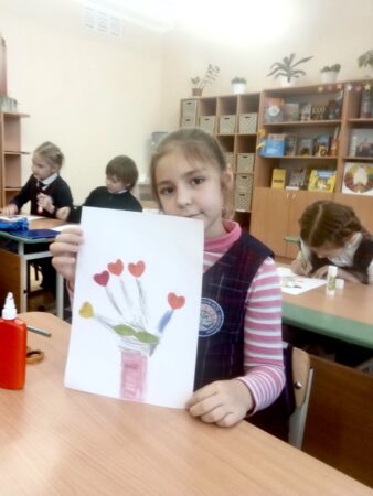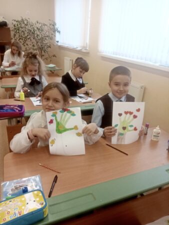 Педагог Елена Вабищевич в теоретической части урока побеседовала с детьми о семье, родных и близких. В практической — дети изготовили аппликации «Дерево любви».