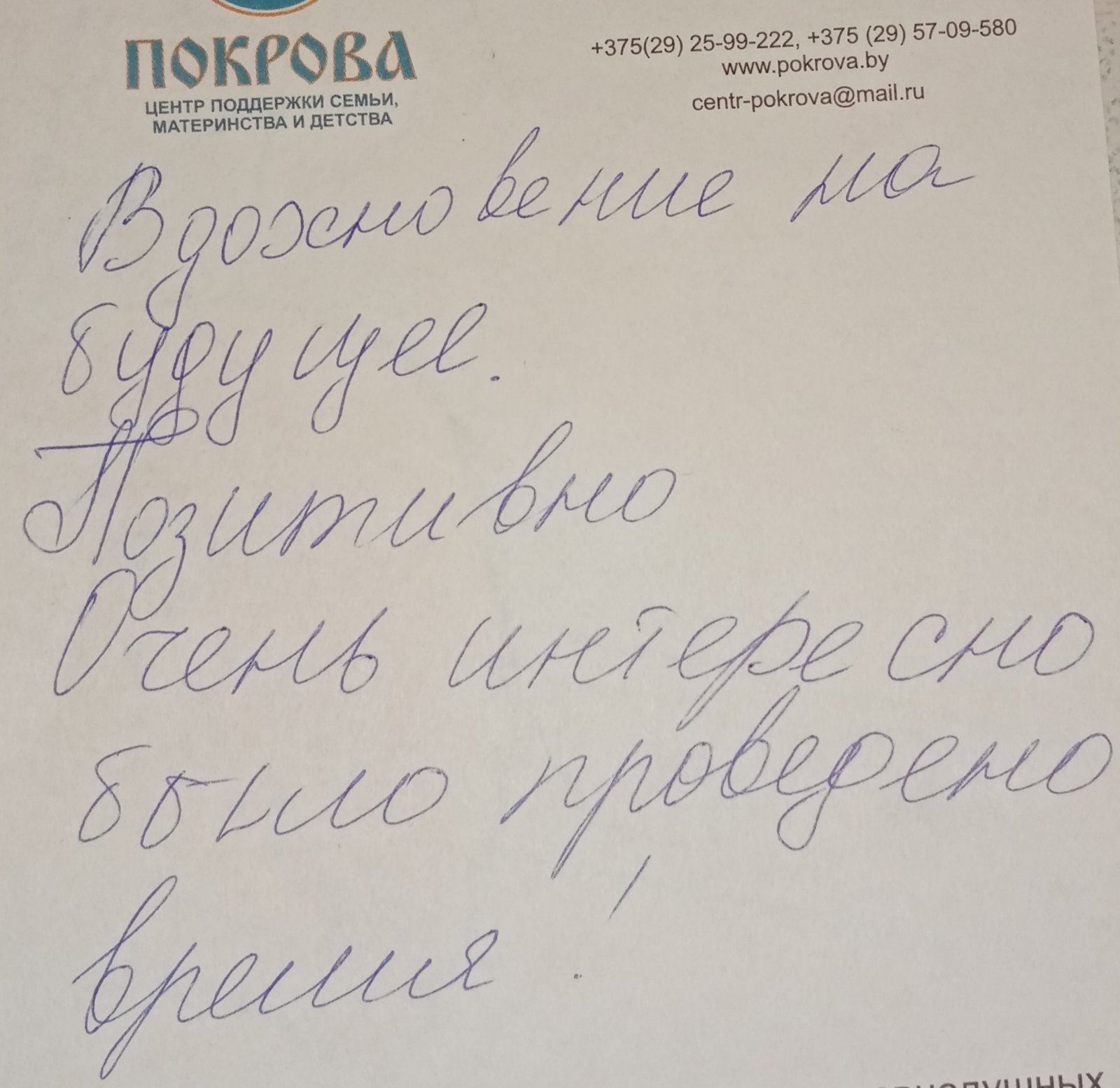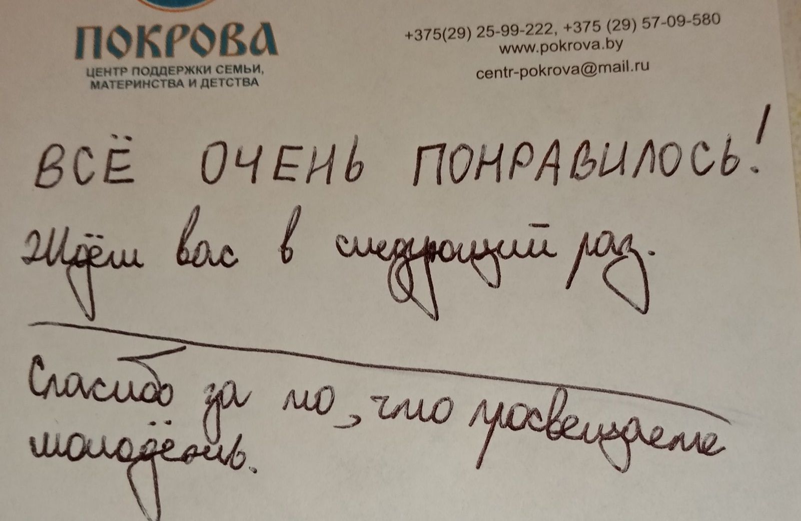 11 ноября в УО «Бобруйский государственный медицинский колледж» состоялись встречи с лектором Центра «Покрова» Еленой Вабищевич. Учащиеся 1-го и 2-го курсов приняли участие в занятиях, посвященных семейной тематике. О любви и верности , о важности целомудрия шла речь на этих встречах. Учащиеся с интересом рассуждали на предложенные темы, с удовольствием играли в игру «Семья моей мечты» и тепло благодарили педагога в письменных отзывах.