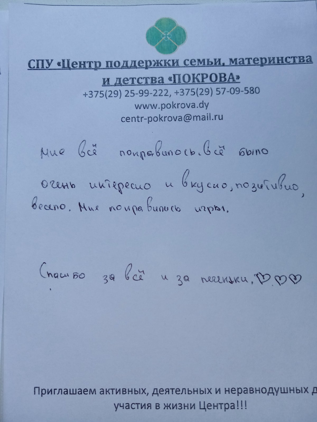 Завершилась встреча дружеским общением за сладким столом. По окончании мероприятия гости Центра оставили теплые письменные отзывы, в которых благодарили за прием и выражали желание посещать «Покрова» регулярно.