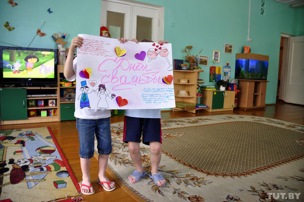 В минувшие выходные в Гомеле прошла не совсем обычная свадьба. Молодожены после росписи в доме гражданских обрядов поехали не в ресторан, как это принято, а в социальный приют для детей. Там их уже ждали с плакатами, стихами и с деревом счастья.