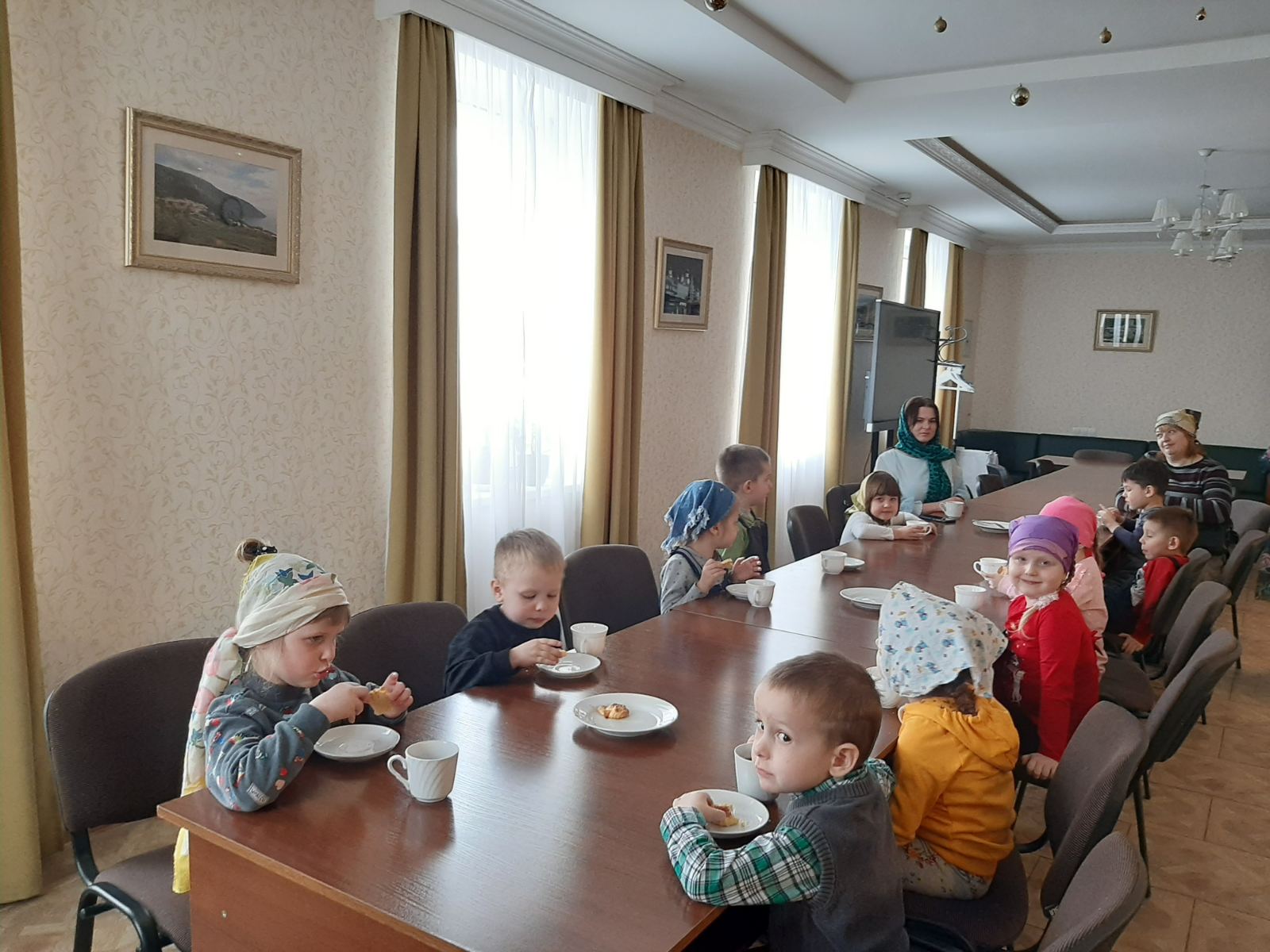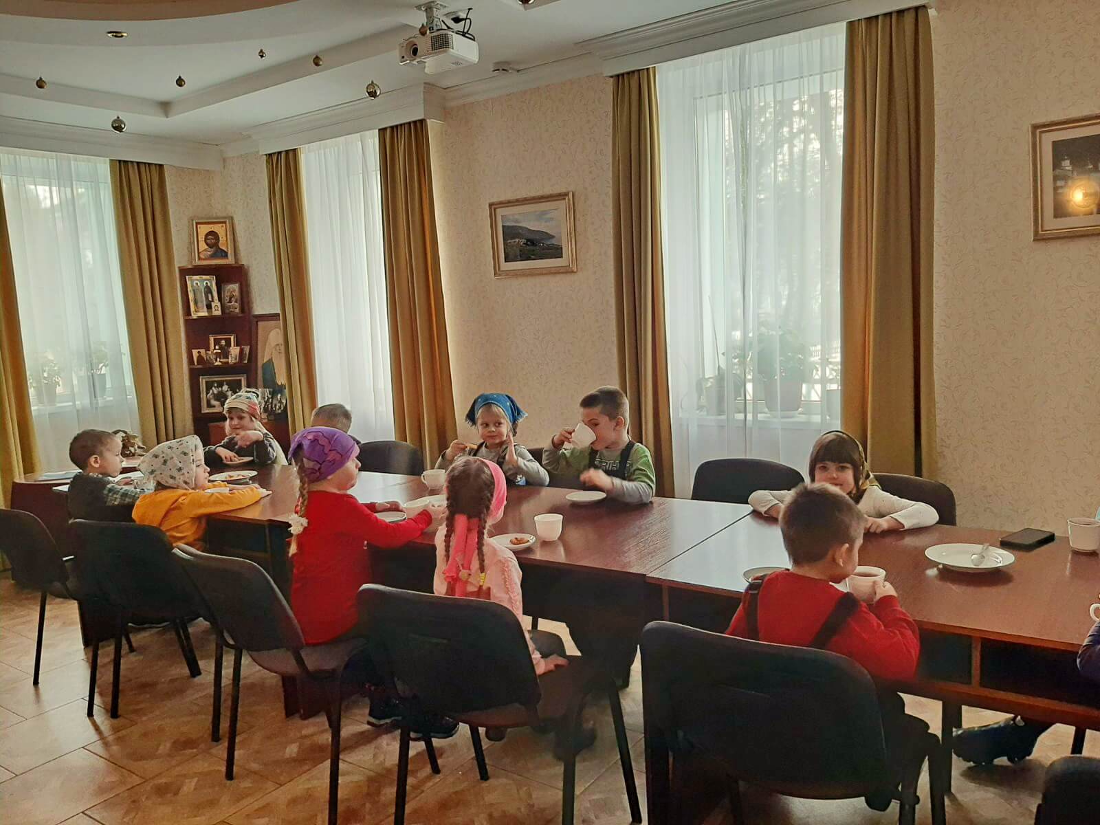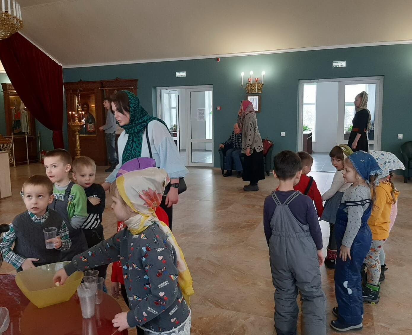 25 февраля в храме Покрова Пресвятой Богородицы состоялась Божественная литургия в праздник иконы Божией Матери «Иверская». Наш Храм с удовольствием встретил маленьких прихожан: воспитанников ГУО «Ясли-сад № 4 г.Бобруйска», в сопровождении Ирины Александровны Мальцевой (заведующего учреждения дошкольного образования), воспитателей дошкольного образования. Многим взрослым стоит брать пример с этих юных молитвенников! Ребята с восторгом делились впечатлениями от службы во время чаепития: «Очень понравилось!», «Мне все-все было видно!», «Было интересно и тихо». А еще мы с девчонками и мальчишками вспомнили любимые сказки и мультфильмы!