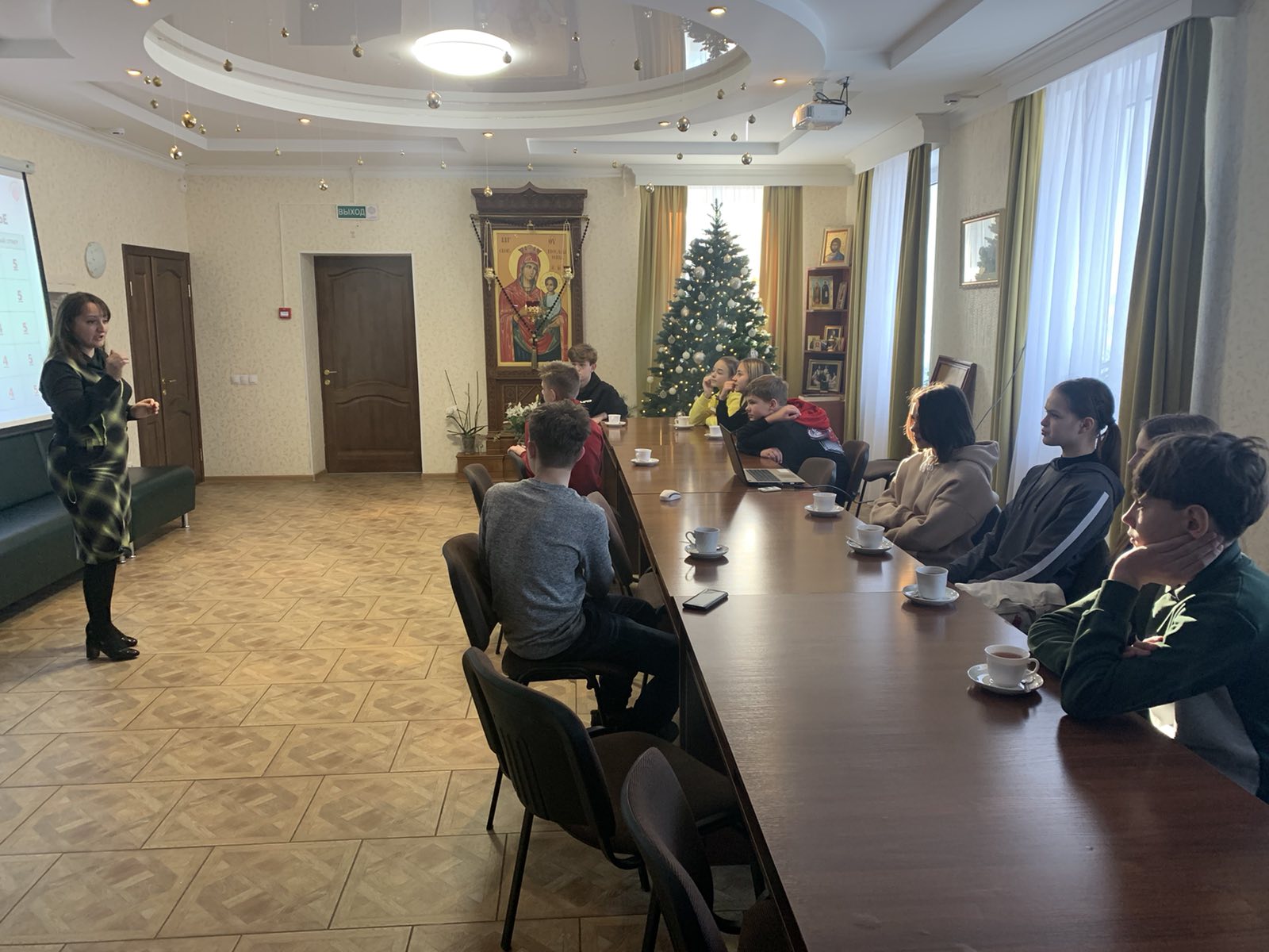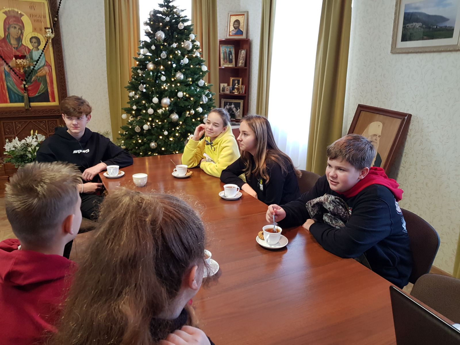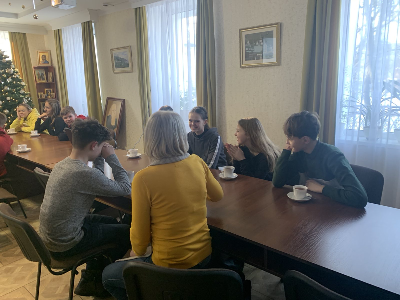 Центр «Покрова» очень любит встречать гостей… многие становятся нашими друзьями. Вот и сегодня 23 января мы встретили ребят из ГУО «Гимназия-колледж искусств г.Бобруйска» учащихся 8-го класса. Для девчонок и мальчишек была организована экскурсия по Центру. Гости познакомились с храмом Покрова Пресвятой Богородицы и его настоятелем иереем Алексием. Батюшка рассказал ребятам историю явления иконы Покров Пресвятой Богородицы. Далее, путешествуя по Центру гости увидели классы, спортивный и конференц- залы, познакомились с выставкой творческих работ воспитанников объединения по интересам «Вернисаж» (изобразительное искусство). Продолжила нашу встречу игра-диалог «Любовь. Семья. Счастье». Дети спорили и рассуждали над вопросами: «Зачем нужна семья?» «Бывает ли любовь с первого взгляда?» «Какие примеры супружеской жизни Вы знаете?»