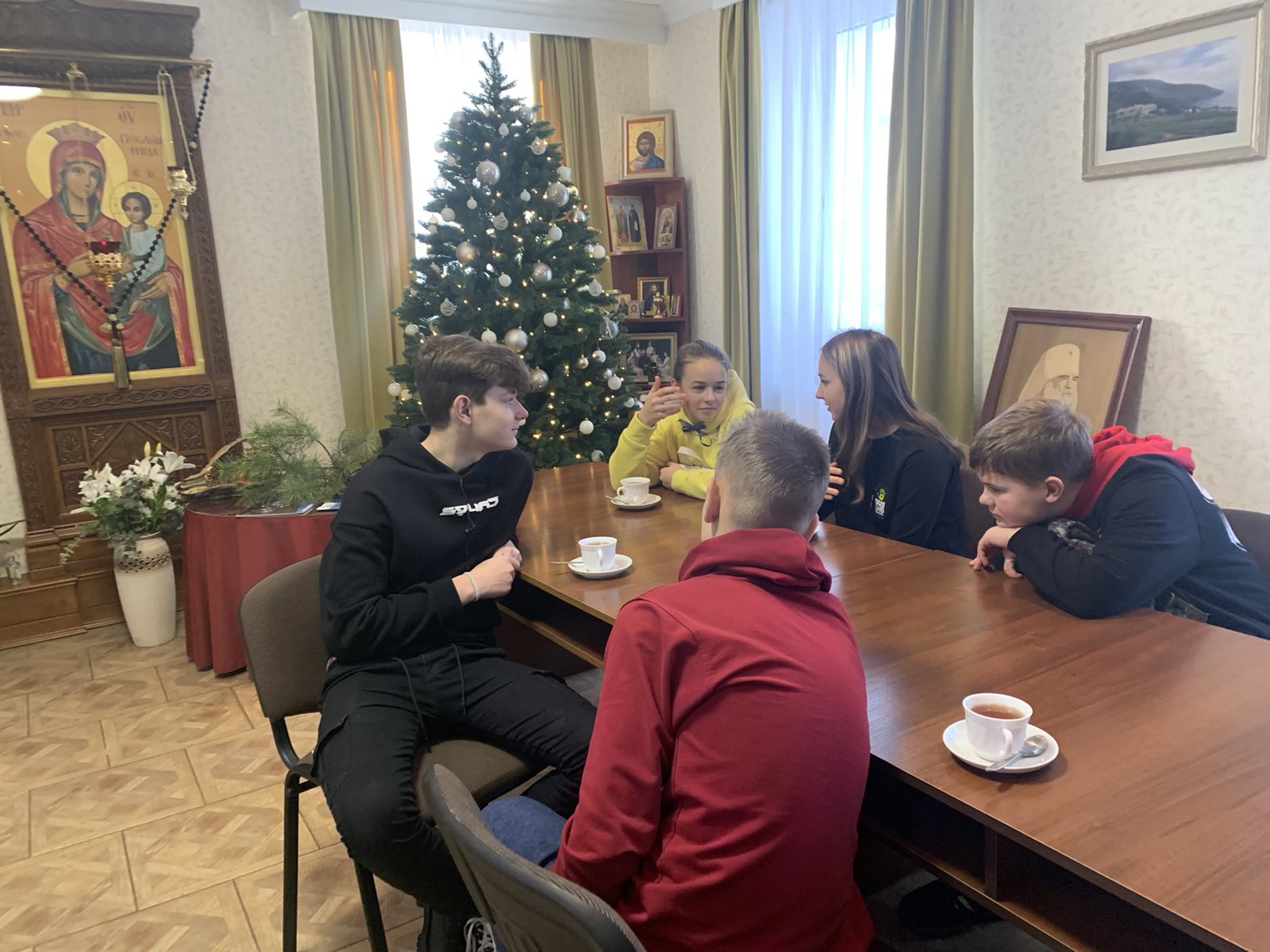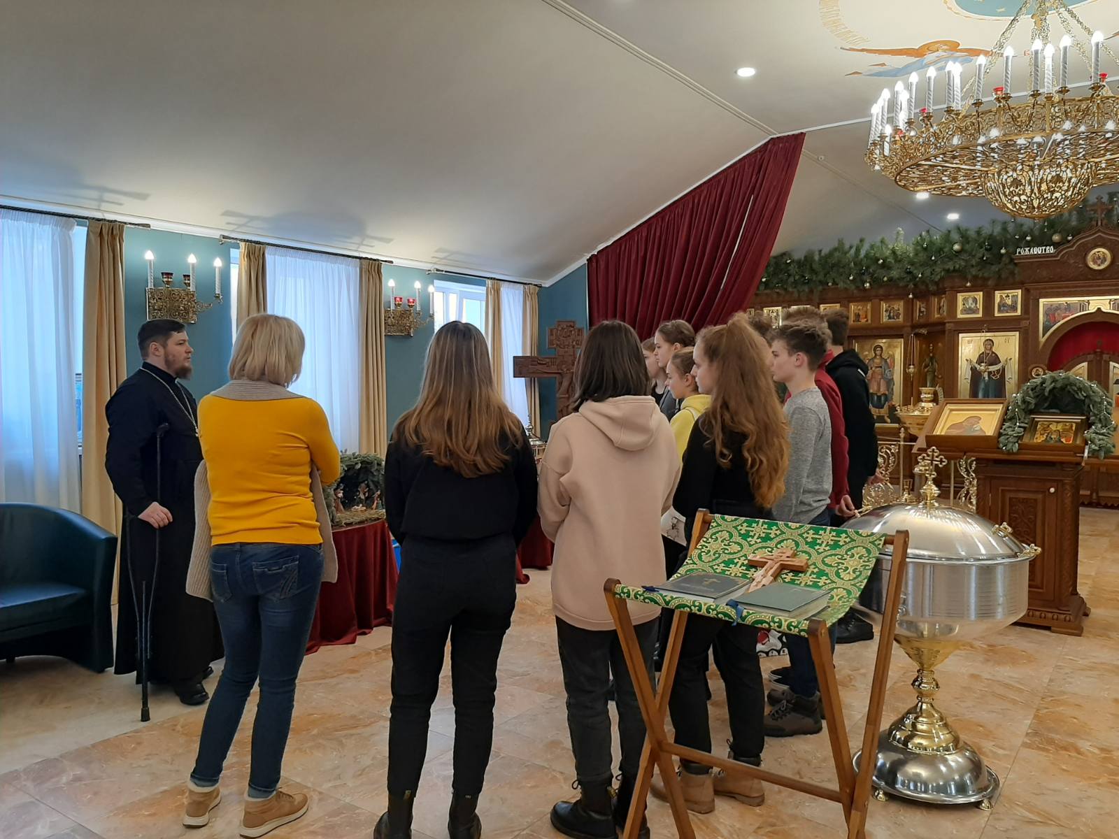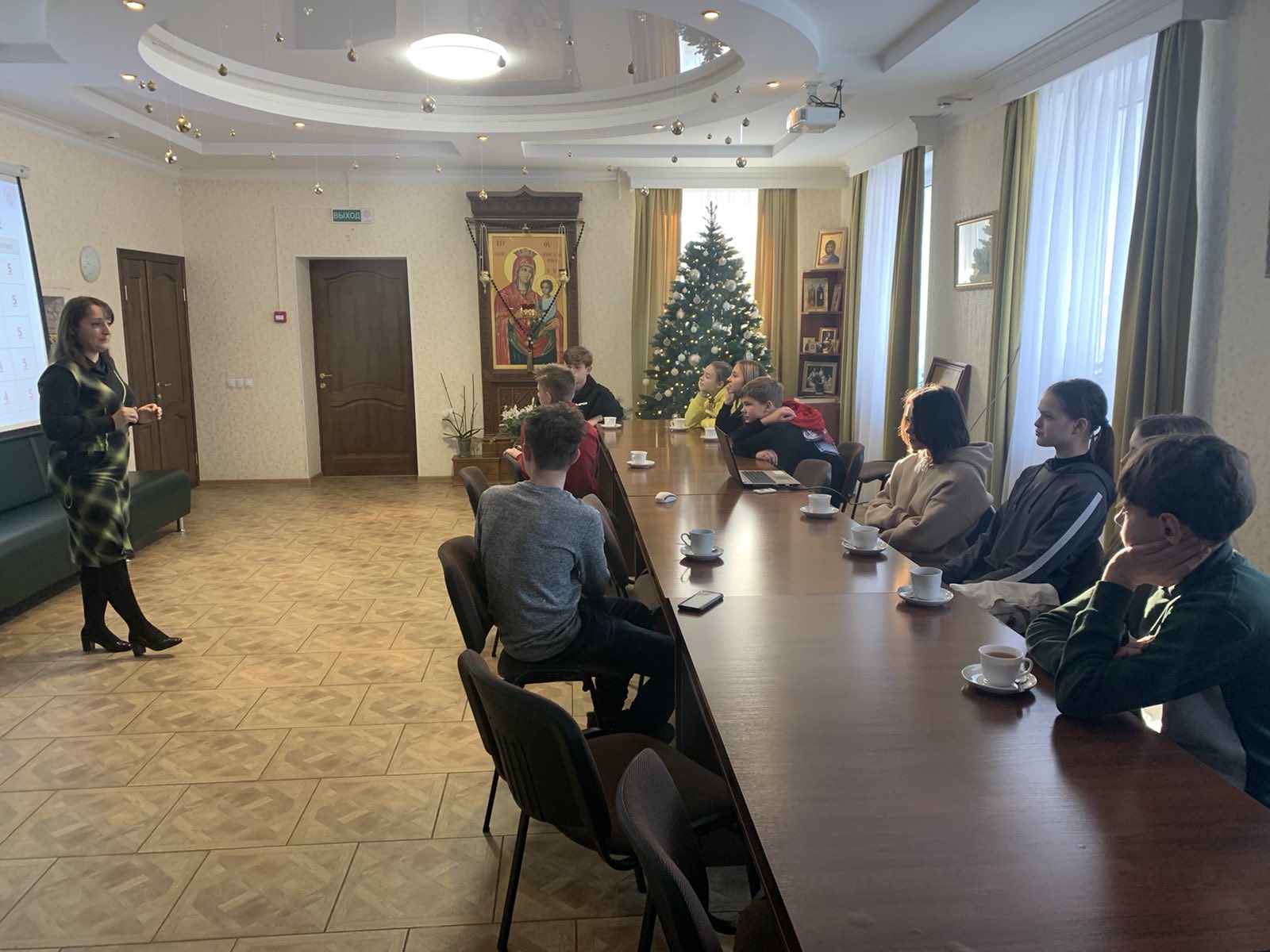 Центр «Покрова» очень любит встречать гостей… многие становятся нашими друзьями. Вот и сегодня 23 января мы встретили ребят из ГУО «Гимназия-колледж искусств г.Бобруйска» учащихся 8-го класса. Для девчонок и мальчишек была организована экскурсия по Центру. Гости познакомились с храмом Покрова Пресвятой Богородицы и его настоятелем иереем Алексием. Батюшка рассказал ребятам историю явления иконы Покров Пресвятой Богородицы. Далее, путешествуя по Центру гости увидели классы, спортивный и конференц- залы, познакомились с выставкой творческих работ воспитанников объединения по интересам «Вернисаж» (изобразительное искусство). Продолжила нашу встречу игра-диалог «Любовь. Семья. Счастье». Дети спорили и рассуждали над вопросами: «Зачем нужна семья?» «Бывает ли любовь с первого взгляда?» «Какие примеры супружеской жизни Вы знаете?»