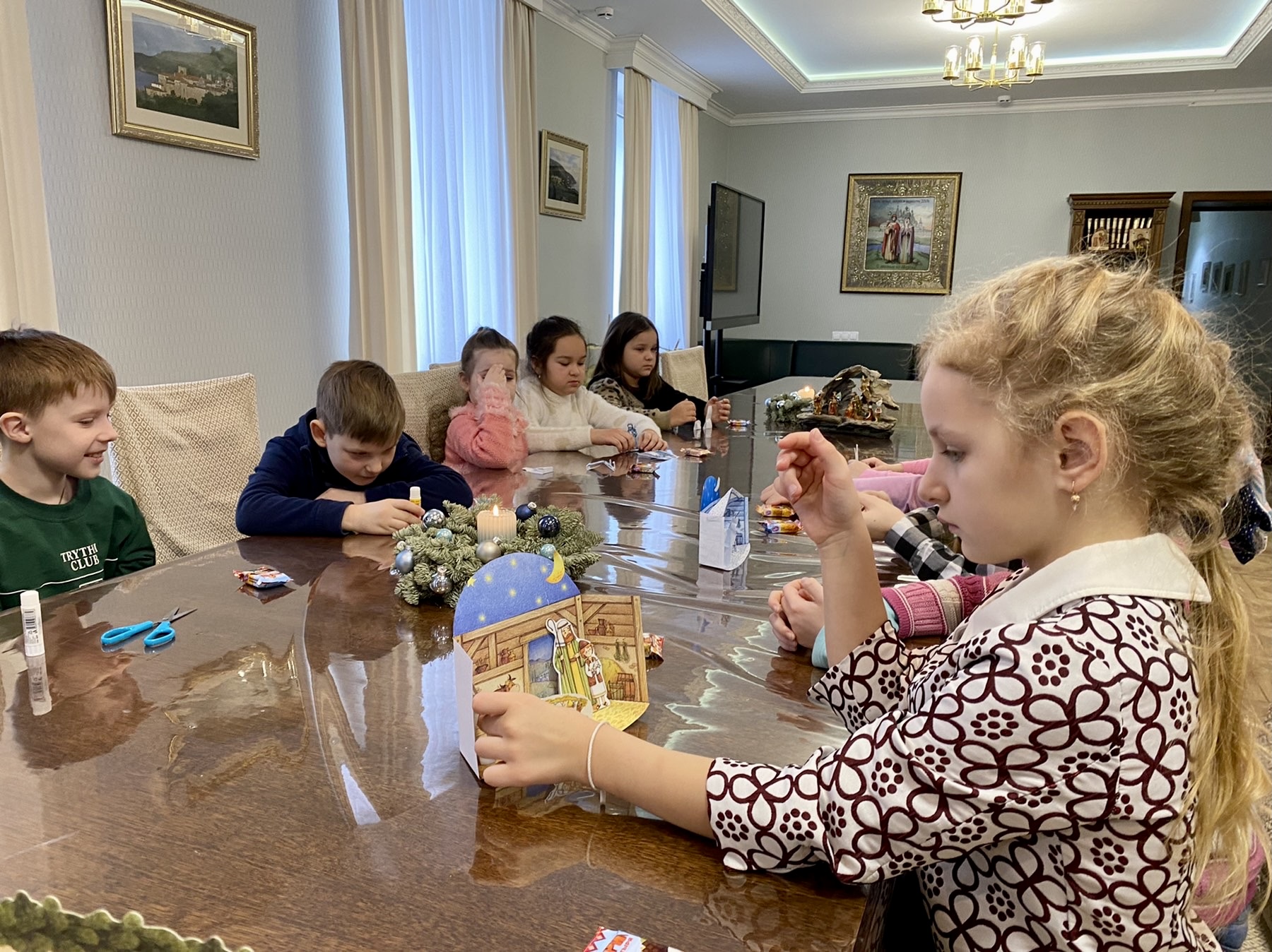 Особенно понравилось ребятам творческое задание: смастерить вертеп! Они дружно взялись за работу, с интересом разглядывали и старательно закрепляли на свои места красочные детали вертепа.