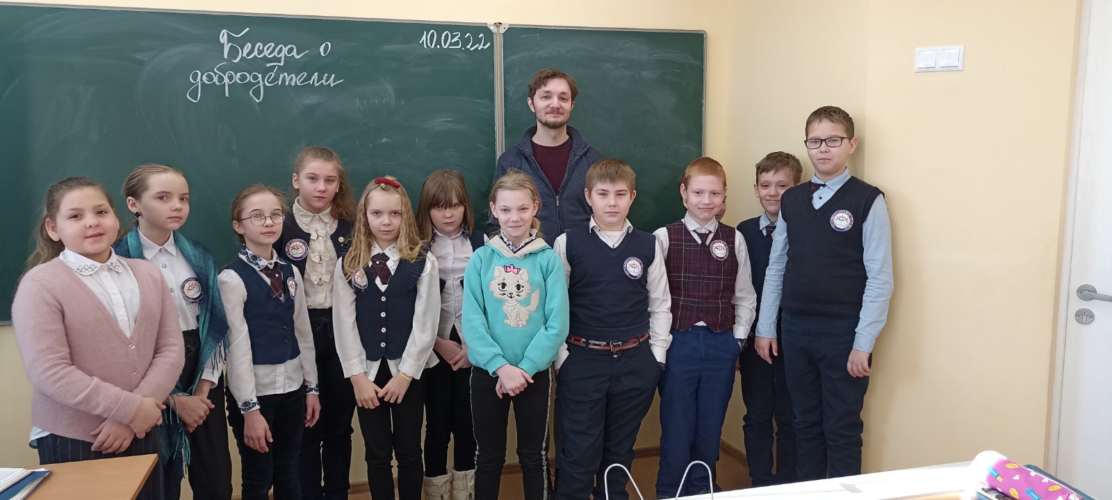 14 марта состоялась встреча педагога Центра поддержки семьи, материнства и детства «Покрова» Романа Москаленко с учащимися 7 класса СШ№23. Педагог провел занятие на тему «Поговорим о добродетели», рассказал о том, что такое совесть, свобода выбора, честь и достоинство. На примере притчи «Как Спаситель в гости ходил», Роман Васильевич объяснил юным слушателям, как нужно строить отношения с Богом и людьми.