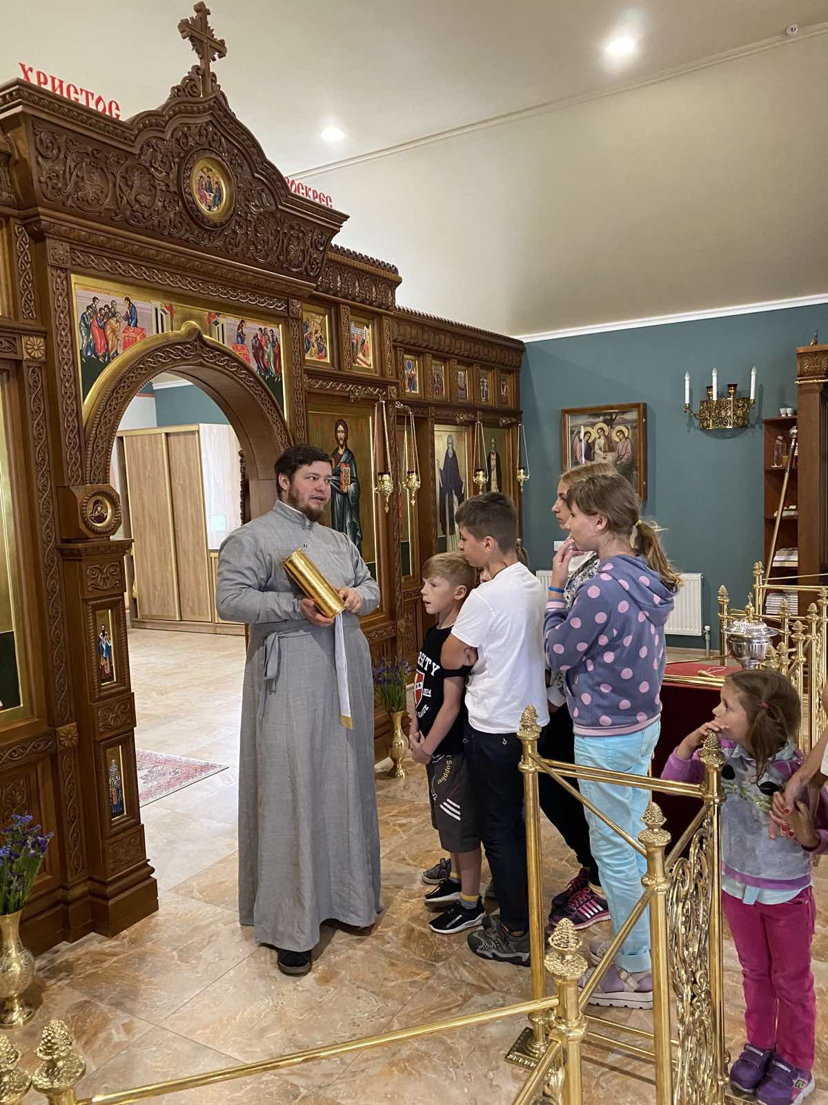Иерей Алексей Поляков, настоятель храма Покрова Пресвятой Богородицы Центра «Покрова» познакомил ребят с особенностями внутреннего строения и внутреннего убранства православного храма, устройством и назначением алтаря. В ходе рассказа дети задавали вопросы, а после экскурсии поставили свечи о здравии, попробовали себя в качестве звонарей!