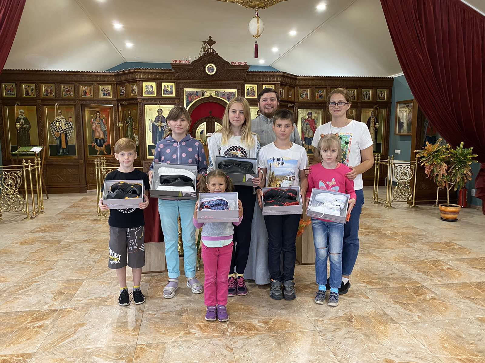 С радостью детишки получили подарки к новому учебному году — новую обувь!