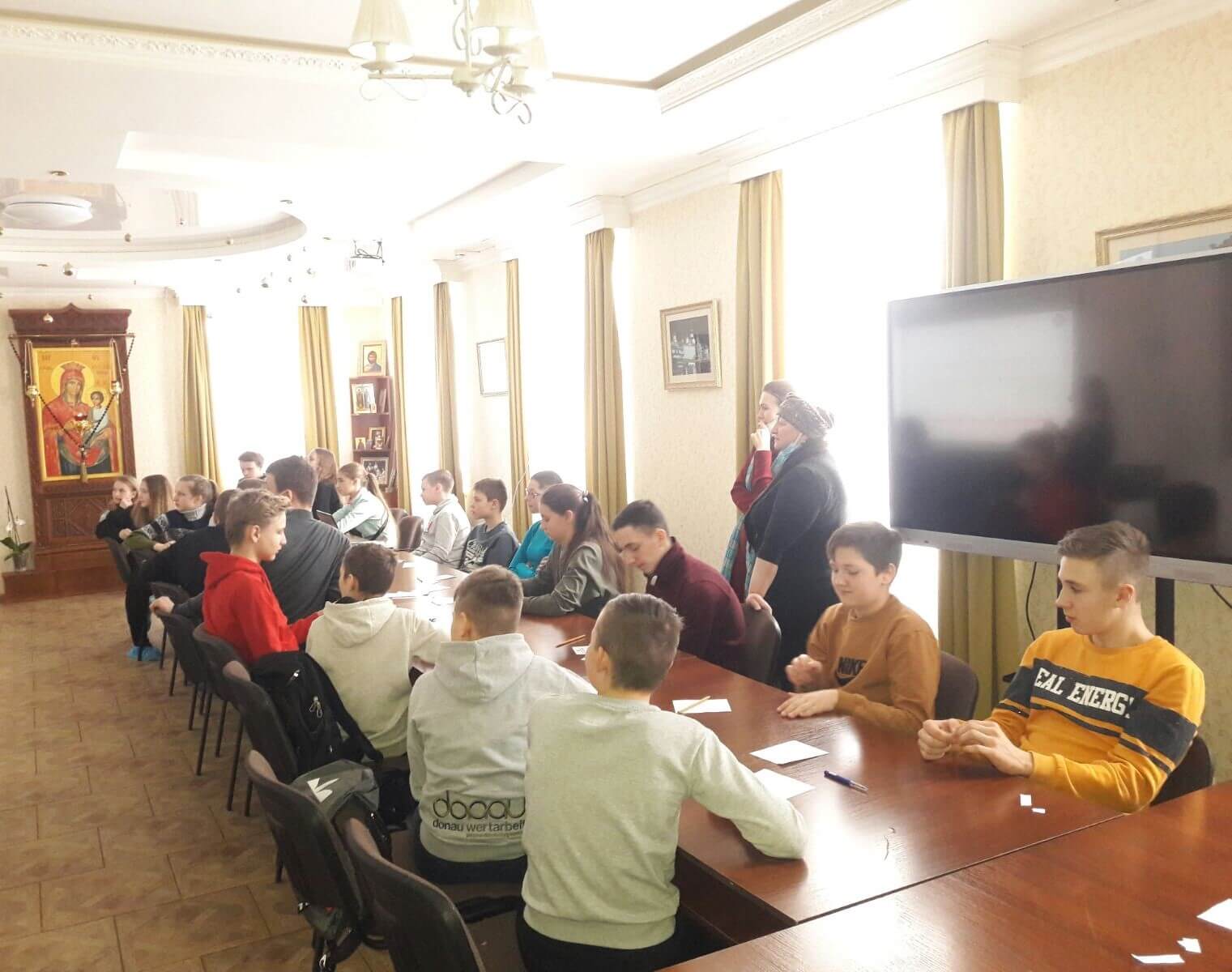 20 февраля Центр поддержки семьи, материнства и детства «Покрова» посетили учащиеся 7-х классов СШ №32. В ходе визита ребята интересно и познавательно провели время: познакомились с историей учреждения, узнали, как налажена в Центре кружковая работа, как осуществляется помощь ближним, посетили домовой храм Покрова Пресвятой Богородицы. Экскурсию по храму для ребят провел настоятель иерей Алексий Поляков.