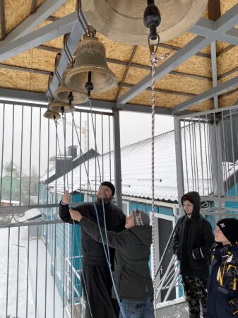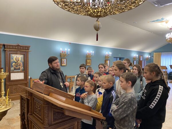 Затем вместе с отцом Алексеем гости прошли в Покровский храм. С большим интересом они рассматривали иконостас, иконы и слушали историю образа Покрова Богородицы. После беседы ребята поднялись на колокольню. Самые смелые захотели почувствовать себя настоящими звонарями и сделали свои первые удары в колокола.