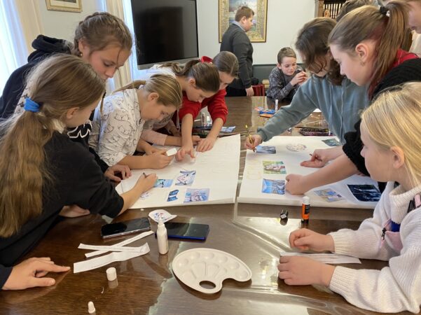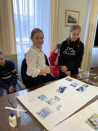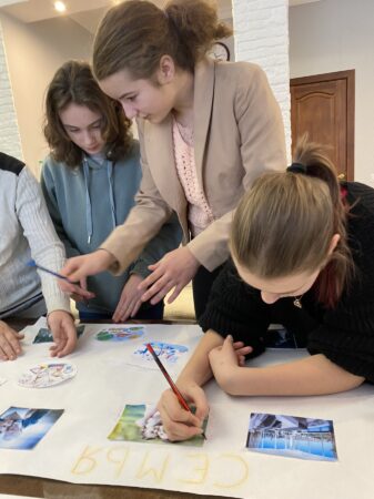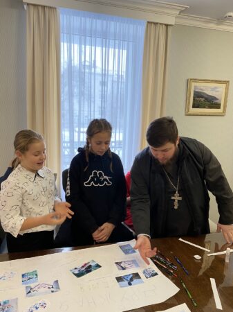 Знакомство ребят с Центром началось с обзорной экскурсии по учреждению. Гости заглянули в классы и студии, где ежедневно занимаются дети разных возрастов в объединениях по интересам. Кристина Игоревна рассказала ребятам историю создания Центра «Покрова, а также об основных направлениях работы.