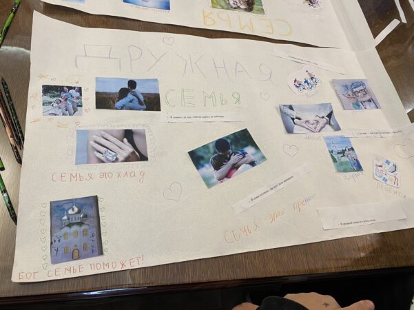 Далее гостям было предложено составить коллаж «Семейные ценности» и дети дружно взялись за «работу».