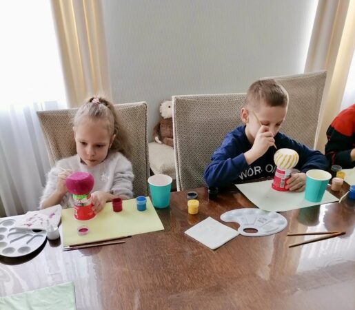 Чем же они уникальны — просто потому, что двух одинаковых подсвечников нет! Каждый — с оригинальным рисунком, с замысловатыми узорами, созданными руками детей. Ребята проявили выдумку и фантазию при раскрашивании своих изделий. И остались собой очень довольны.