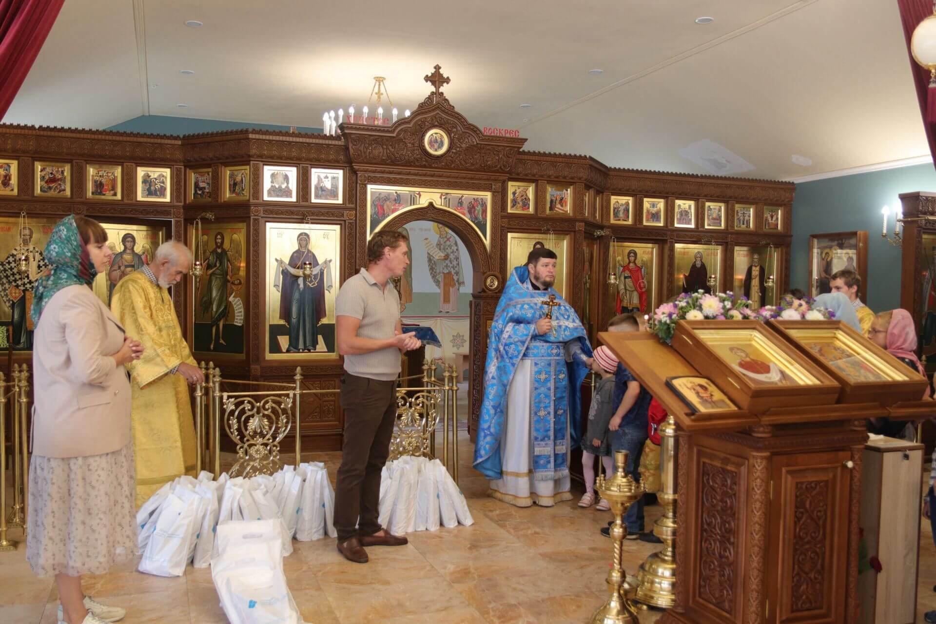Сегодня в храме Покрова Пресвятой Богородицы после Божественной Литургии настоятель храма иерей Алексий (Поляков) совершил молебен-благословение на начало учебного года. Девочки и мальчики, их родные, близкий взрослые преисполнены волнения. Юные прихожане нашего храма, воспитанники объединений по интересам Социально-просветительского учреждения «Центр поддержки семьи, материнства и детства «Покрова» совместно помолились о благополучном начале учебного года, о успехах и победах, о благополучном усвоении новых знаний. К этим молитвам батюшка дал несколько очень ценных советов о послушании добросовестном и уважительном отношении к учителям и наставникам. После молебна директор Центра «Покрова» Андрей Владимирович сказал напутственное слово и вместе с заместителем Кристиной Игоревной поздравили ребят с праздником, вручили подарки со школьными принадлежностями. А в небольшом интервью школьники поделились своими впечатлениями. На вопрос: «Что ты чувствуешь в преддверии 1 сентября?» Ребята отвечали: