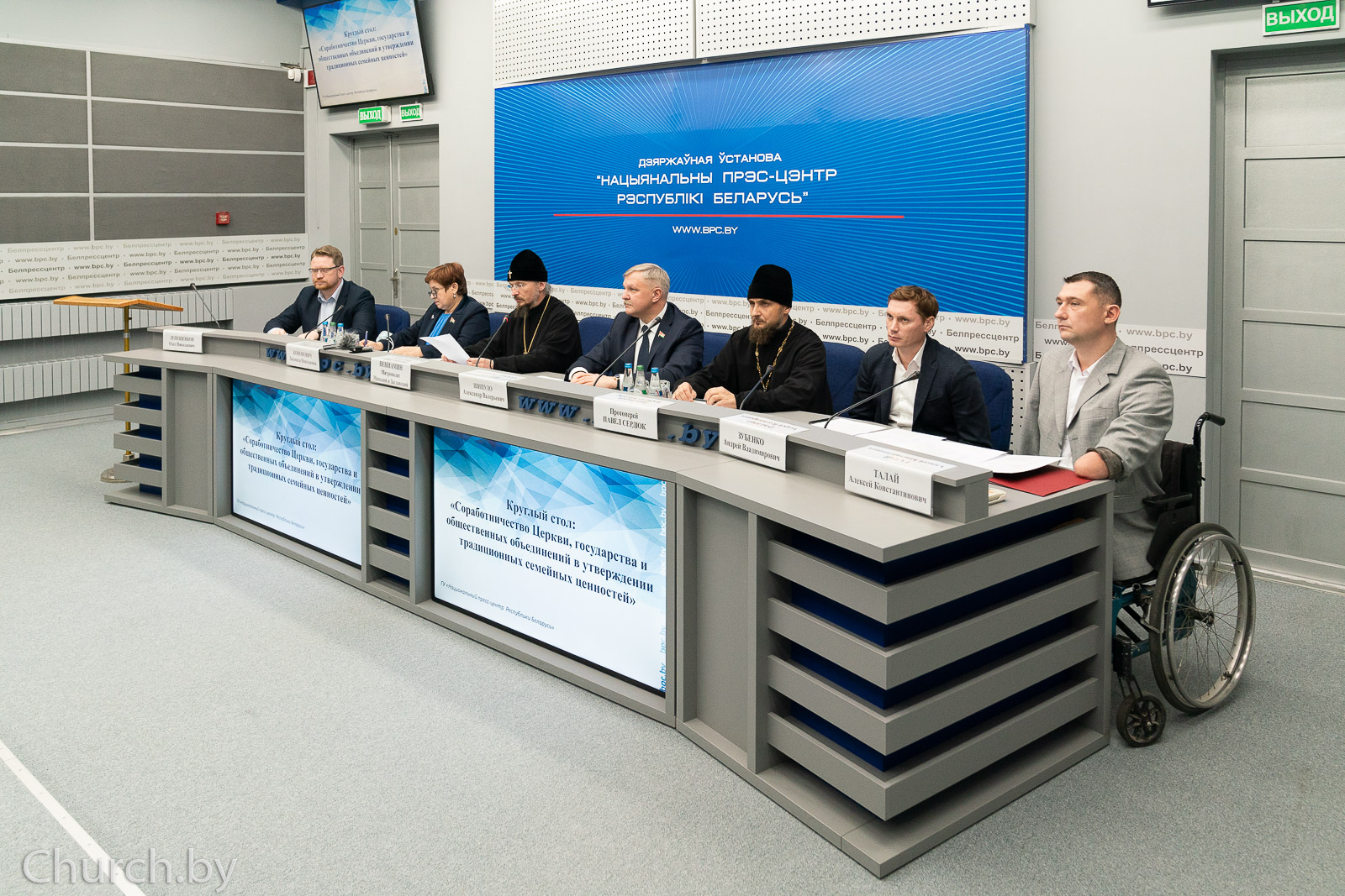 В ходе круглого стола выступили митрополит Минский и Заславский Вениамин, Патриарший Экзарх всея Беларуси; Председатель Постоянной комиссии по труду и социальным вопросам Палаты представителей Национального собрания Республики Беларусь Людмила Кононович; председатель Синодального отдела Белорусской Православной Церкви по вопросам семьи, защиты материнства и детства протоиерей Павел Сердюк; заместитель председателя Постоянной комиссии по здравоохранению, физической культуре, семейной и молодежной политике Палаты представителей Национального собрания Республики Беларусь Александр Шипуло; общественный деятель, учредитель благотворительного Фонда Алексея Талая Алексей Талай; Член Постоянной комиссии по здравоохранению, физической культуре, семейной и молодежной политике Палаты представителей Национального собрания Республики Беларусь Светлана Одинцова; начальник управления воспитательной и идеологической работы Национального института образования Наталья Катович; Председатель Правления Благотворительного фонда поддержки семьи, материнства и детства «Покров» Андрей Зубенко.