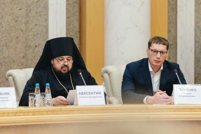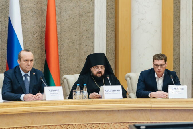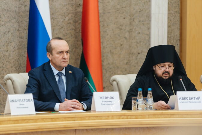 Открывая круглый стол «25-летие Союзного государства. Стратегический ресурс национальной безопасности Беларуси и России – крепкая многодетная многопоколенная семья», приветственное слово к участникам форума от имени Предстоятеля Белорусской Православной Церкви зачитал викарий Патриаршего Экзарха всея Беларуси епископ Несвижский Авксентий.