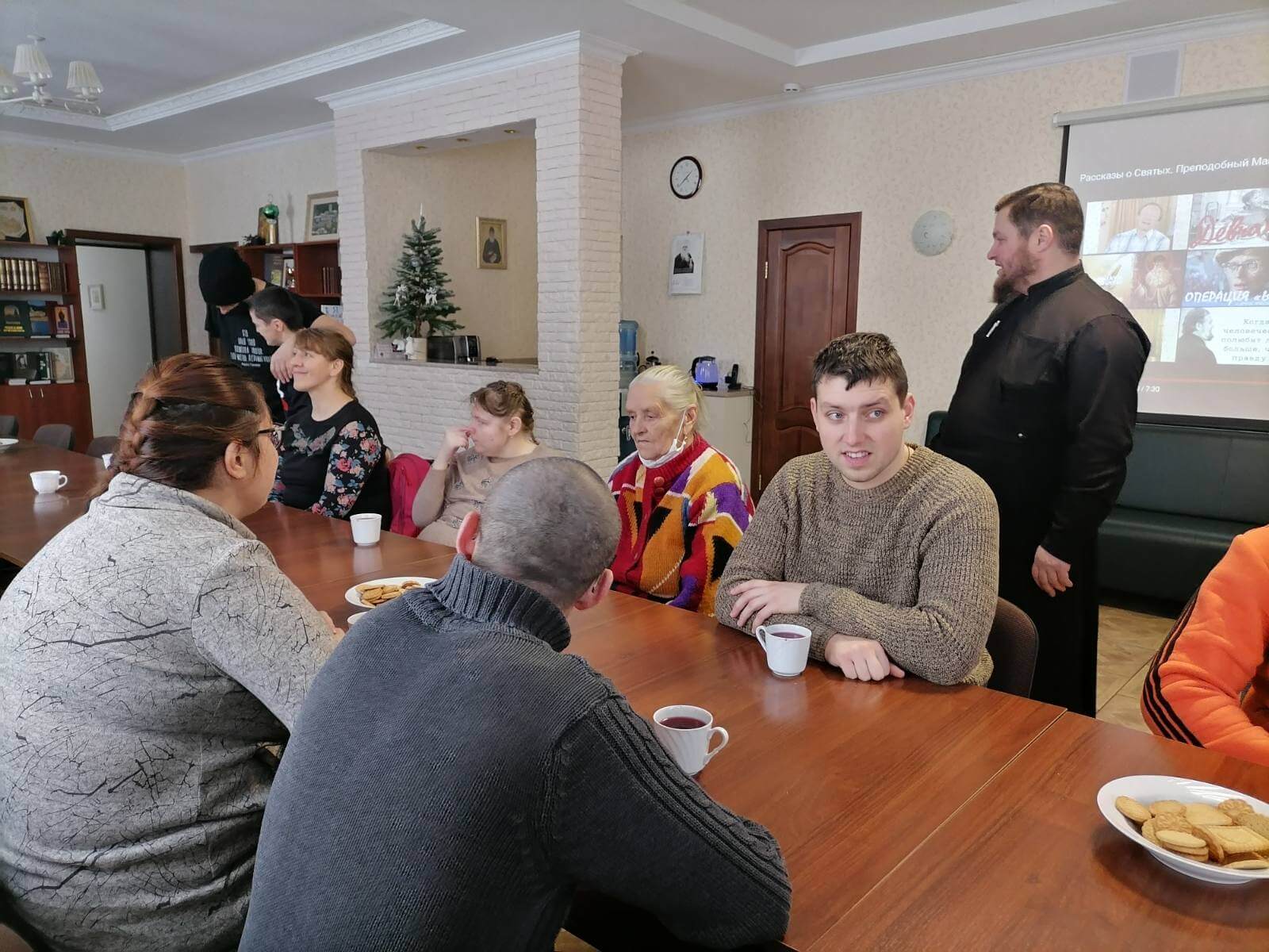 2 февраля в Центре поддержки семьи, материнства и детства «Покрова» состоялась встреча ребят с ограниченными возможностями из Ленинского и Первомайского ТЦСОНов г.Бобруйска с настоятелем домового храма в честь Покрова Пресвятой Богородицы иереем Алексием Поляковым. Во время беседы с необычными гостями отец Алексий рассказал о житии преподобного Максима Грека, а также показал фильм об этом удивительном подвижнике. Затем гости Центра отправились с спортивный зал и весело провели время, соревнуясь в ловкости и сноровке под руководством Валерия Михайловича Алексеева.