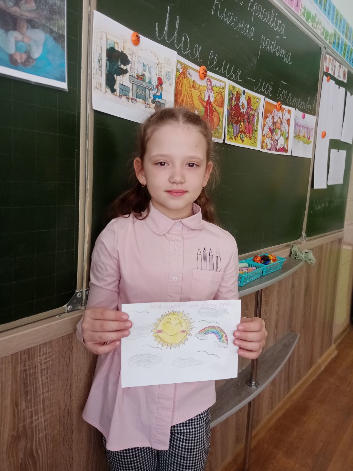 В СШ № 29 состоялись встречи педагога из Центра поддержки семьи, материнства и детства «Покрова» с учащимися младших классов . На протяжении занятия ребята изобретали свои личные рецепты семейного счастья, учились радовать близких и делились мнениями друг с другом. Особенно юной аудитории понравилось отвечать на вопросы викторины «Сказочные родственники». В течение урока мальчики и девочки рассказывали о своих родных, называли их лучшие душевные качества и чем хотели бы быть похожими на них. В творческой части занятия ребята изобразили семейное счастье на бумаге: веселые улыбки на радостных лицах, уютные дома , любимые питомцы — все это нашло отражение в рисунках на тему «Тепло наших сердец».