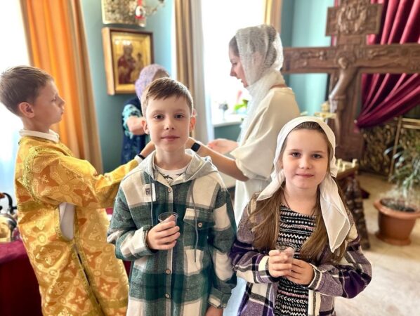 Юные участники Литургии исповедались и причастились.