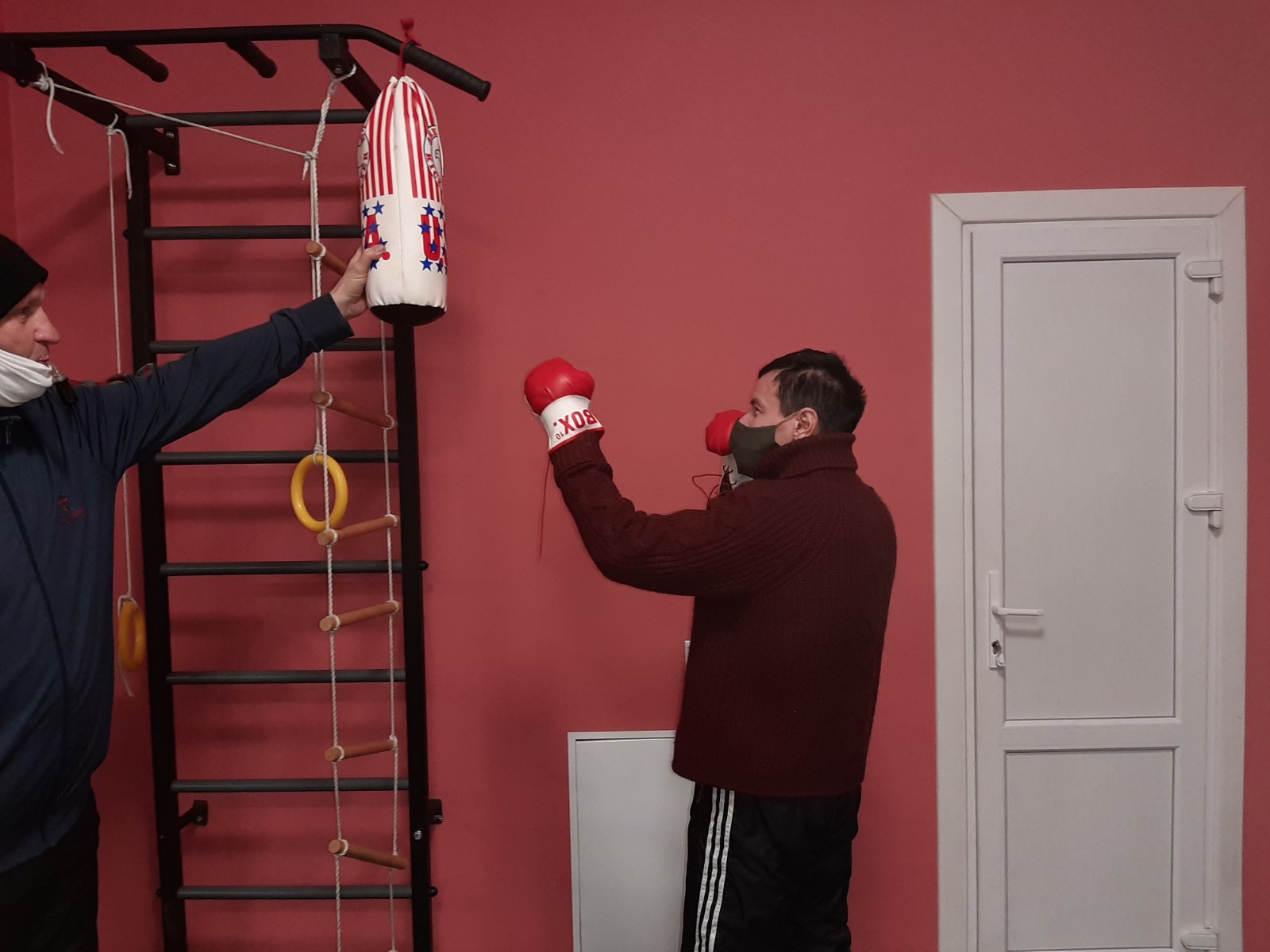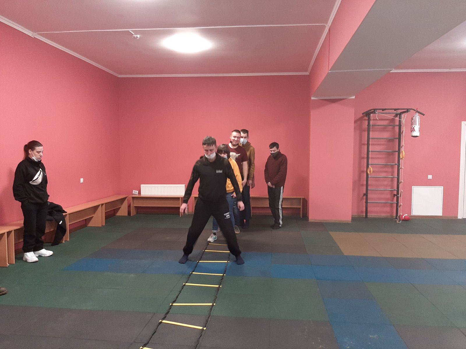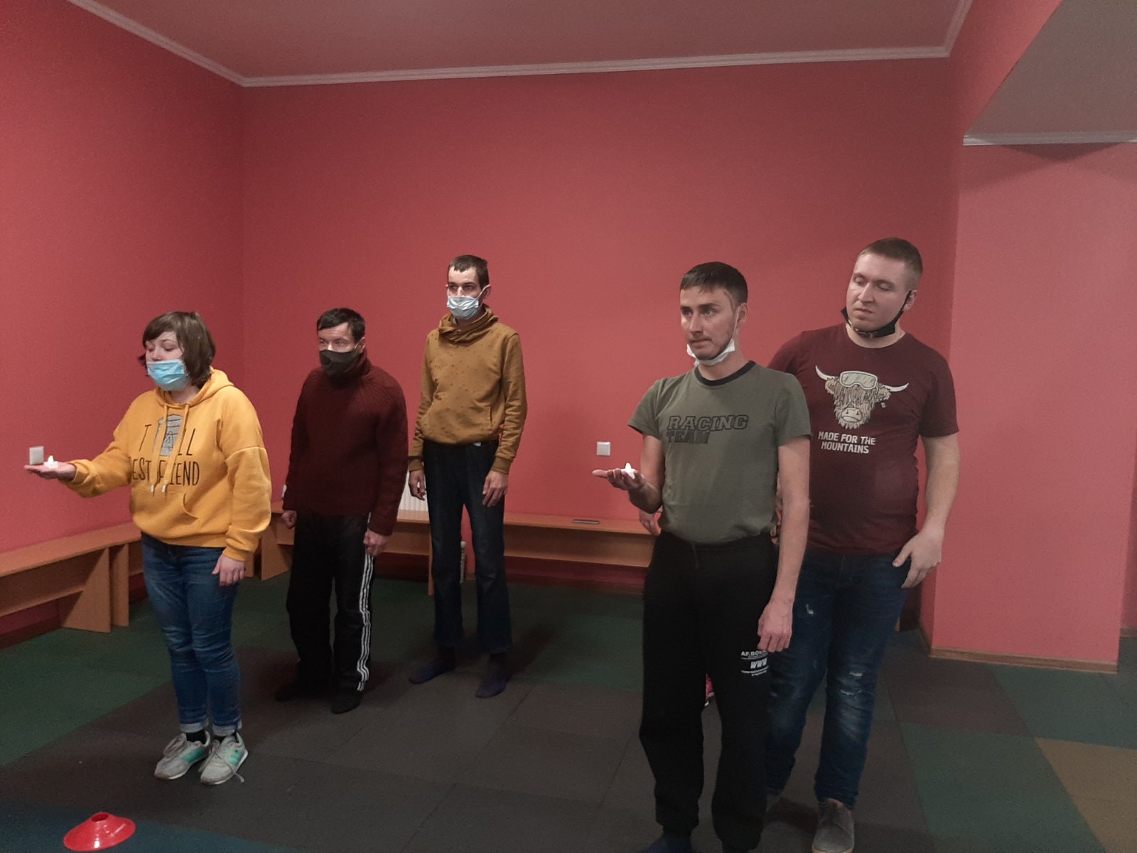 Далее встреча с особенными людьми продолжилась в спортивном зале: под руководством тренера Валерия Алексеева гости упражнялись в силе, выносливости и ловкости. Изюминкой сегодняшнего занятия стало необычное задание — пробежать с зажженной свечой в руках, не погасив огня.